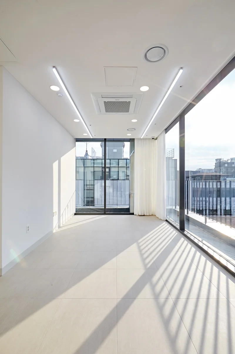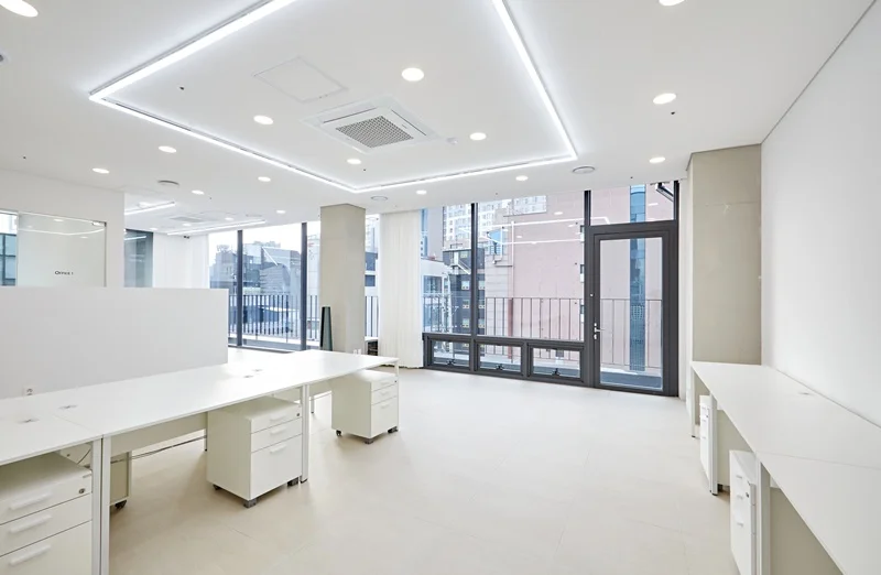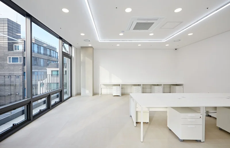강남구인테리업체 사무실의 내부 공간은 전체적으로 화이트 톤을 중심으로 설계했습니다. 벽과 천장을 모두 화이트 컬러로 마감하여 밝고 깔끔한 이미지를 연출하고, 자연광이 들어오는 창가 주변은 더욱 환하고 쾌적한 분위기를 만들어 주었습니다.