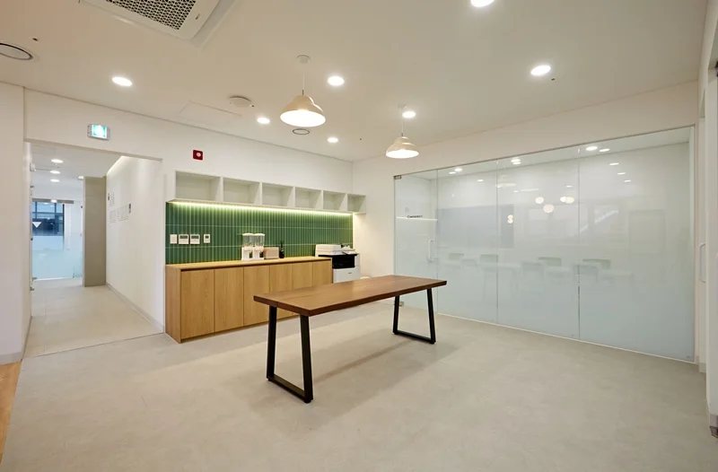 이 공간은 단순한 휴게 공간을 넘어 직원들의 창의적 아이디어가 발현되는 소통의 장으로도 활용됩니다. 편안한 분위기와 세련된 디자인은 자연스럽게 업무 효율성과 직원 만족도를 높이는 역할을 합니다.