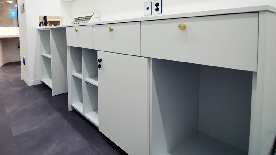 카운터는 고객이 결제를 하는 공간으로, 의약품 포장과 영수증 발행 등의 업무를 수행합니다. 또 현금 수납함과 카드 단말기 등이 있어야 하며, 고객과의 소통이 원활하게 이루어질 수 있도록 충분한 공간이 확보되어야 합니다.