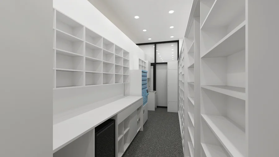 개포동상가인테리어 약국 설계에서 조제실은 가장 중요한 공간 중 하나이며, 고객의 처방전에 따라 의약품을 조제하는 공간입니다. 조제실 내부에는 의약품 보관용 냉장고, 조제용 컴퓨터, 조제 기구 등이 있어야 하며, 청결한 환경을 유지해야 합니다. 또 외부에서 볼 수 없도록 차단벽을 설치하는 것이 좋습니다.