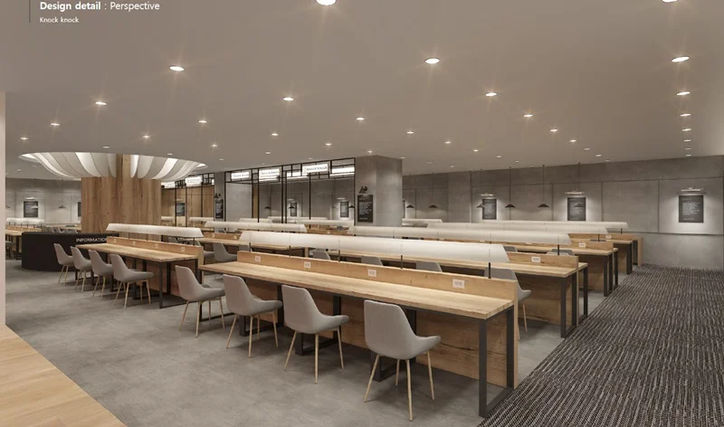 복도 중앙부에 배치된 ‘옐로우 파티션 존’은 답답한 벽 대신 감각적인 높이의 파티션을 활용하여 스터디카페형 디자인의 정수를 보여줍니다. 시선을 사로잡는 선명한 옐로우 컬러는 공간에 활력을 불어넣을 뿐만 아니라, 자칫 어두워질 수 있는 노출 천장 아래에서 조명을 반사하여 전체적인 조도를 밝히는 역할까지 수행합니다. 각 데스크는 넓은 원목 상판을 적용하여 노트북과 전공 서적을 동시에 펼쳐두어도 부족함이 없으며, 인체공학적으로 설계된 패브릭 체어는 장시간 앉아 있어도 허리의 피로도를 최소화해 줍니다.