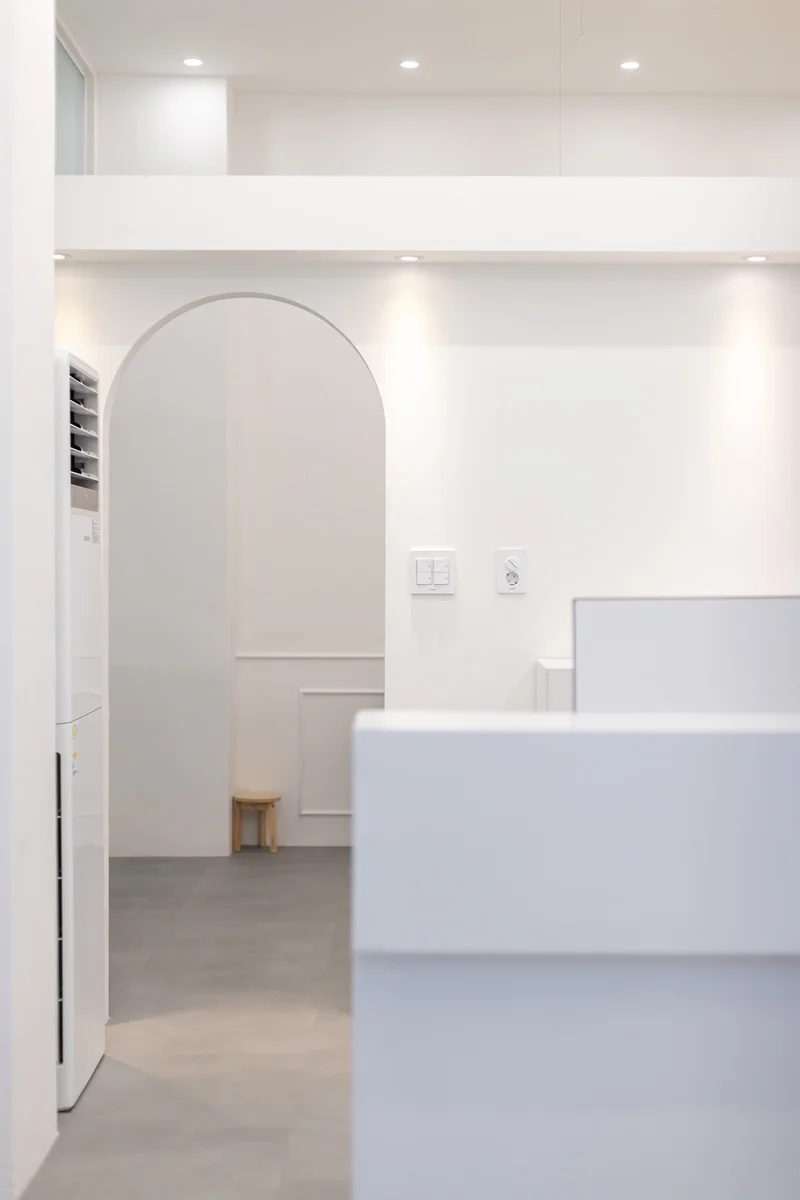 이번 공사의 핵심 포인트 중 하나는 소형 사무실에서 효율적인 동선을 확보하는 것이었습니다. 좁은 공간에서도 직원과 고객이 겹치지 않고 원활하게 이동할 수 있도록, 가벽과 아치형 문을 활용한 공간 분리를 적용했습니다. 또한 부동산 사무실 특성상 고객이 머무는 시간이 상대적으로 길 수 있기 때문에, 대기 공간에도 세심한 신경을 썼습니다.