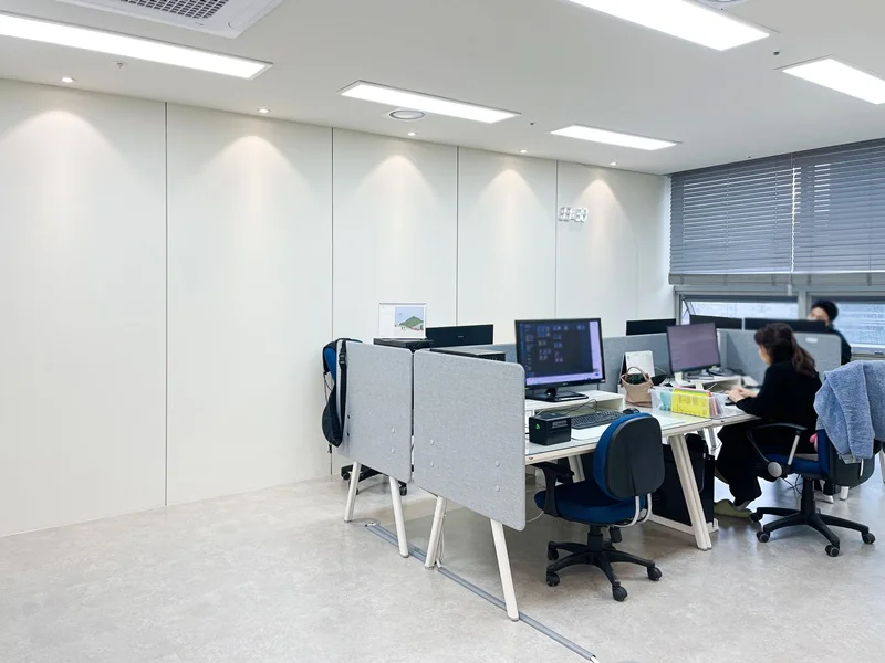 소형 평수 사무실에서 가장 중요한 요소는 사무공간의 효율적인 구성입니다. 이번 사무공간은 벽을 최소화하고, 오픈형 구조로 구성하여 직원 간 소통이 원활하면서도 답답함 없이 개방감을 느낄 수 있도록 디자인했습니다.