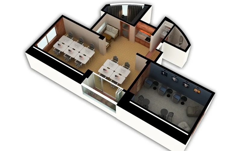 구로구인테리어업체 사무실 디자인 설계의 첫 단계는 클라이언트 미팅입니다. 클라이언트는 직원들의 업무 몰입을 방해하지 않으면서도, 방문객이 편안하게 느낄 수 있는 아늑한 사무공간과 특색 있는 휴게공간을 원했습니다. 이를 기반으로 공간 배치를 구상했고, 입구, 사무공간, 휴게공간, 베란다까지 각 공간의 기능과 동선을 정밀하게 분석했습니다.