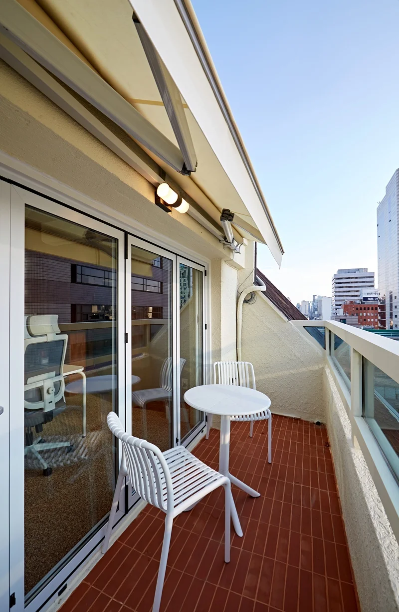 마지막으로, 이번 사무실은 베란다 공간을 활용한 휴게공간까지 마련했습니다. 베란다는 자연광이 풍부하고 환기 또한 용이하여, 직원들이 짧은 휴식을 취하거나 가벼운 스트레칭을 할 수 있는 공간으로 활용됩니다. 베란다에는 미니 테이블과 의자를을 배치하여 자연 친화적인 느낌을 더했습니다. 이를 통해 사무실 내 다른 공간에서는 경험할 수 없는 편안한 휴식 공간을 제공하며, 업무 중간 스트레스 해소와 창의적 아이디어 발현에도 도움을 줍니다.