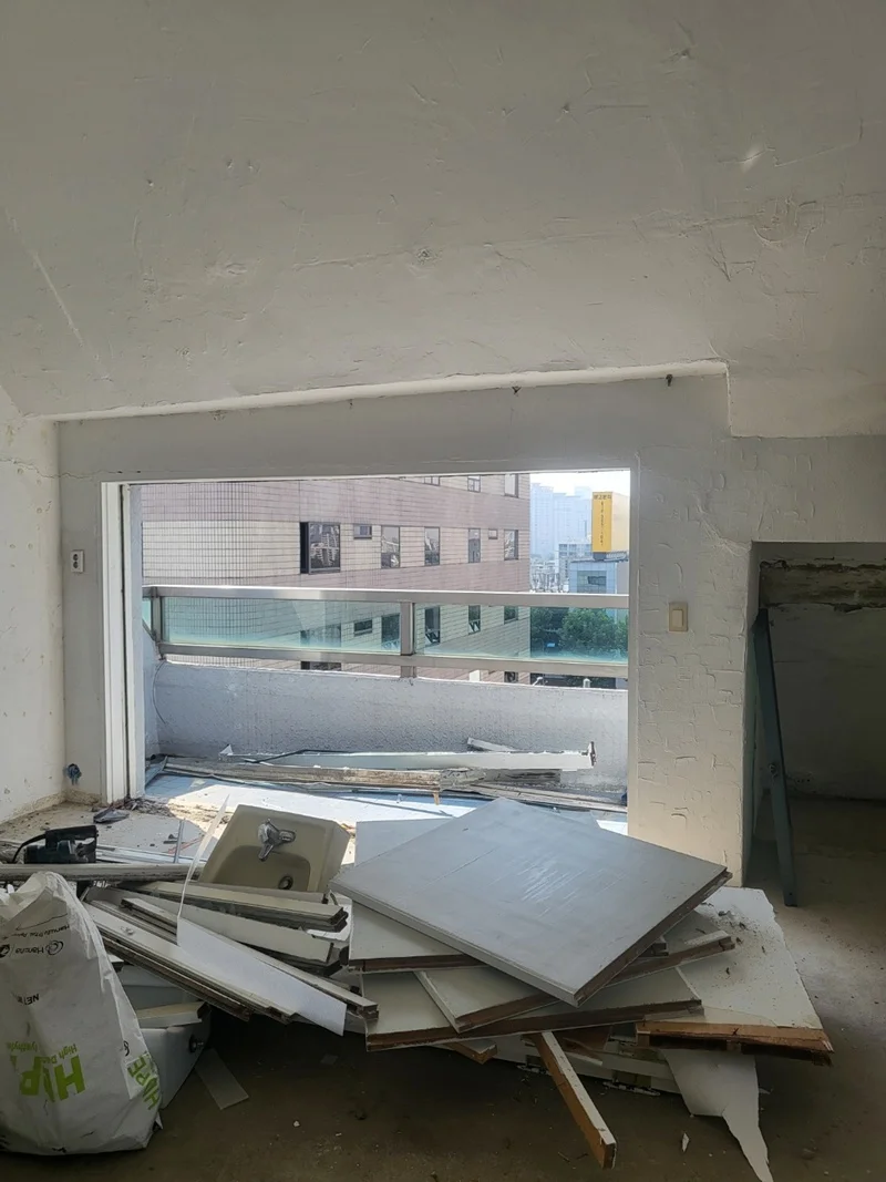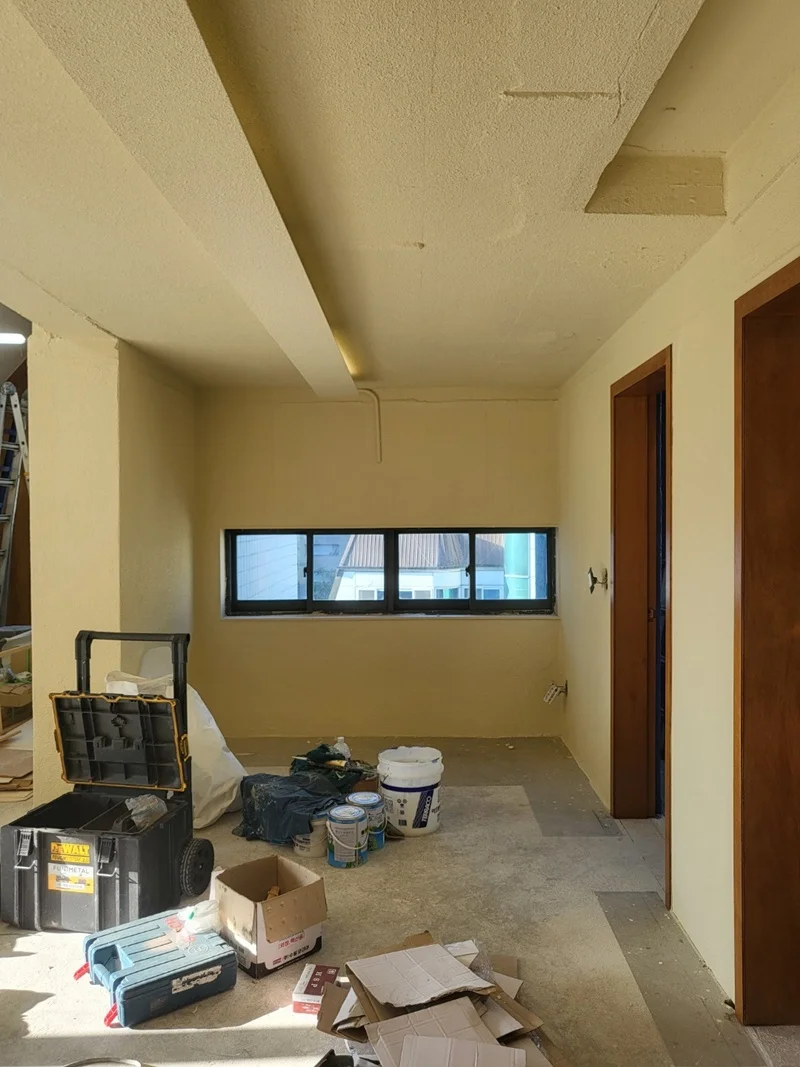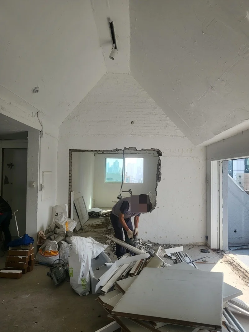 공사는 기존 사무실 내부 철거부터 시작되었습니다. 기존 벽체, 천장 마감재, 바닥재 등을 제거하고, 필요에 따라 하중과 구조 안정성을 확인한 후 보강 작업을 진행했습니다.