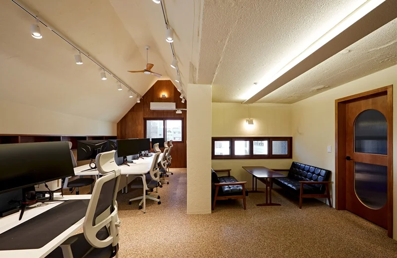 또한, 책장과 테이블 배치를 통해 개인 공간과 소규모 그룹 공간을 자연스럽게 구분했습니다. 직원들은 이 공간에서 휴식을 취하거나 간단한 미팅을 진행할 수 있으며, 사무실 내 다른 공간과 색다른 분위기 차이를 두어 사무실 전체의 특색을 더욱 돋보이게 했습니다.