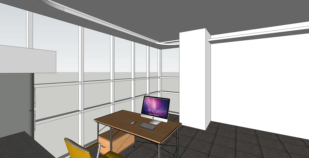 천장에 설치된 매립등과 곡선을 살린 간접 조명은 균일하고 부드러운 빛을 공간 전체에 퍼뜨려, 업무 중 눈의 피로를 효과적으로 줄여주고 밝은 환경을 유지하는 데 기여했습니다. 특히 간접 조명은 천장의 곡선 라인을 따라 은은하게 은빛을 드리워 공간에 세련된 분위기와 동적인 느낌을 더하며, 이는 단조로울 수 있는 화이트 공간에 깊이감과 유연함을 부여하는 요소로 작용합니다.