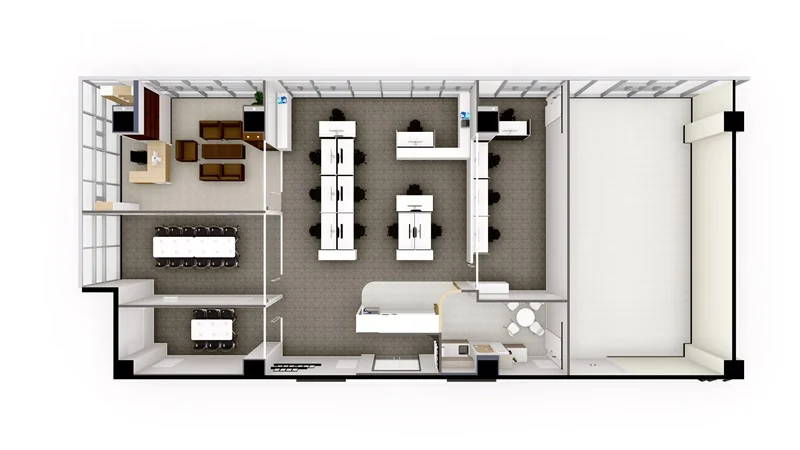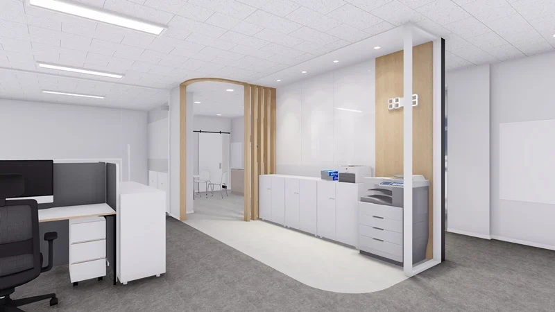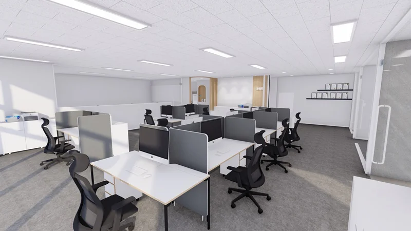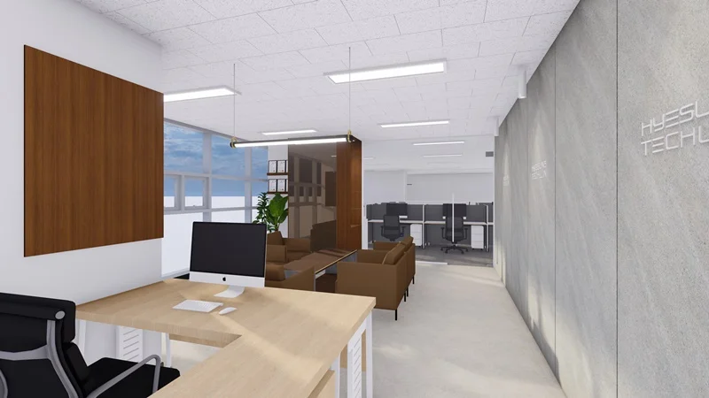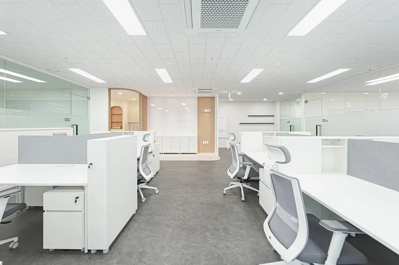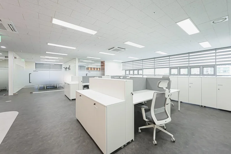 가구 배치 역시 중요한데, 통로를 충분히 확보하여 이동이 편리하도록 해야 하며, 책상과 의자는 서로 마주보도록 배치하여 소통과 협업이 원활하게 이루어질 수 있도록 하는게 좋습니다. 수납 공간을 충분히 확보하여 업무 자료나 물품을 정리할 수 있도록 하면 업무 효율성을 높일 수 있을 뿐만 아니라, 공간을 깔끔하게 유지할 수 있습니다.