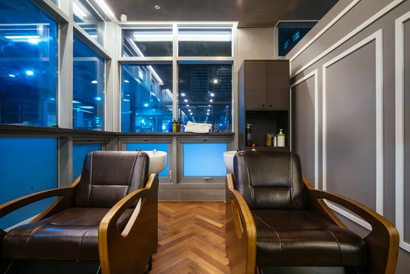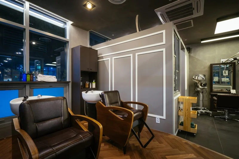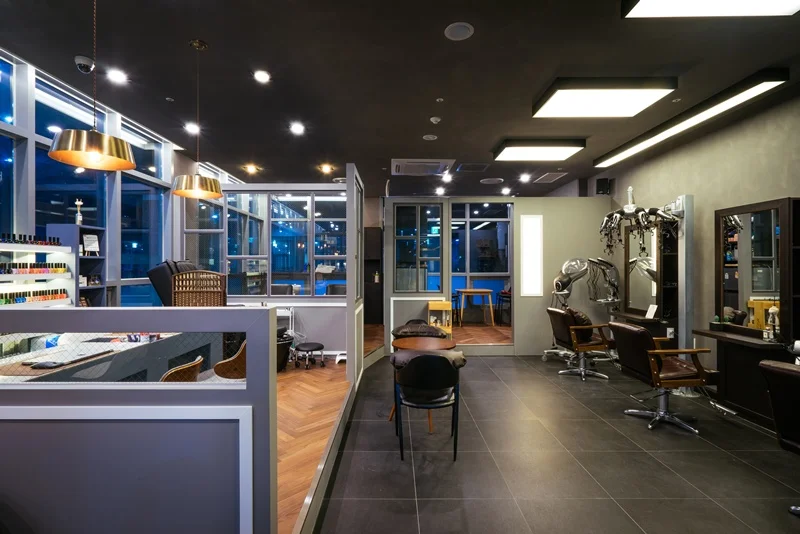 논현동상가인테리어 두 가지 업종이 동시에 이루어지는 공간에서는 장비와 가구의 배치가 매우 중요합니다. 아래는 이를 결정할 때 고려해야 할 몇 가지 사항입니다. 제한된 공간을 최대한 활용하기 위해서는 장비와 가구의 배치를 신중하게 계획해야 합니다. 예를 들어, 미용실 의자와 네일 작업대를 서로 마주 보게 배치하면, 공간을 효율적으로 활용할 수 있습니다. 또 경대와 샴푸실을 가까이 두어 이동 동선을 최소화 할 수 있습니다.