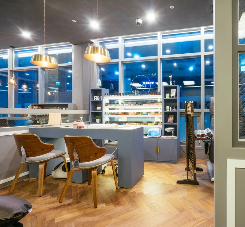 뷰티 업종 중에서도 가장 핫한 아이템인 미용실과 네일샵을 같이 운영 할 수 있는 복합공간에 대한 문의가 많습니다. 하지만 각각의 시술 공간이 필요한 만큼 공간 구성에 대한 어려움을 느끼시는 원장님들이 많은데요. 이런 고민을 해결하기 위해 오늘은 논현동상가인테리어 시공 사례를 통해 두 가지 업종이 동시에 가능한 미용실 겸 네일샵 공간 설계 방법을 알려드리겠습니다.
