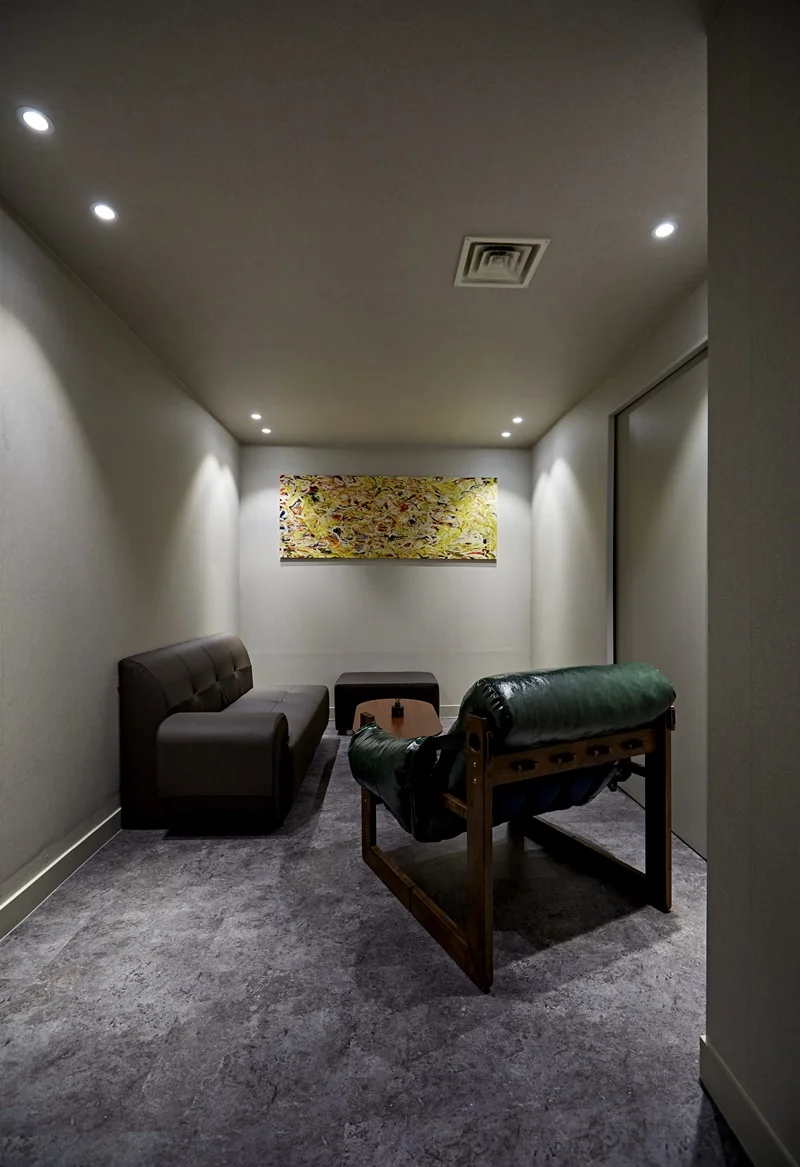 이외에도 간접 조명을 활용해 자연광이 부족한 날에도 포근한 조도를 유지할 수 있도록 설계하였으며, 공간 곳곳에는 작은 식물이나 장식 소품을 배치하여 업무 공간과는 또 다른 분위기를 선사합니다. 사무실 내에서 스트레칭이나 짧은 티타임을 가질 수 있는 이 공간은 구성원들의 복지를 고려한 인테리어 요소로, 실용성과 감성을 동시에 담았습니다.
