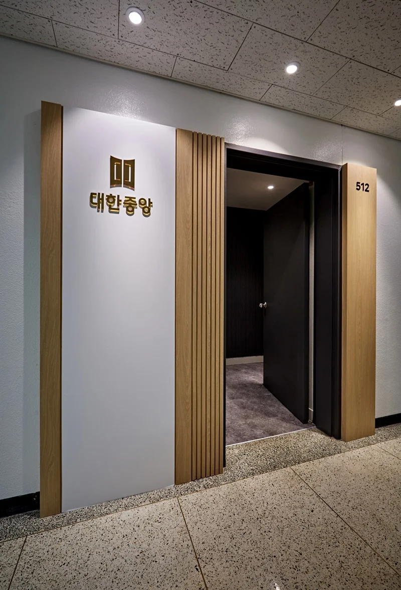 특히 입구 옆에는 로고 간판을 깔끔하게 배치하였고, 조명이 함께 어우러지도록 하여 야간에도 눈에 잘 띄고 고급스럽게 보이도록 설계했습니다. 전체적인 파사드는 지나가는 사람에게는 ‘믿을 수 있는 법률사무소’라는 인상을 남기며, 클라이언트에게는 ‘이곳에 방문해도 괜찮겠다’는 심리적 안정감을 제공합니다.