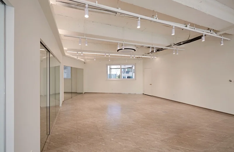 복층 사무실의 핵심 공간은 넓은 오픈형 사무공간입니다. 기존의 칸막이 중심 구조를 탈피하고, 직원들의 소통과 협업을 촉진할 수 있도록 유리가벽을 활용하여 공간을 나누었습니다.