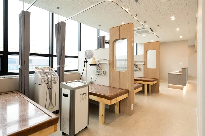 또다른 중요한 요소는 편의 시설입니다. 대기 시간 동안 편안하게 휴식할 수 있는 공간, 간단한 운동 기구, 독서나 스마트폰 사용을 위한 테이블 등을 마련한다면 환자의 만족도를 높일 수 있습니다. 안전 측면에서는 전기 및 기계 장치의 안전성을 보장하고, 비상 상황에 대비한 응급 시스템을 구축해야 합니다. 바닥재와 가구는 부상 위험을 최소화하도록 부드러운 소재를 사용하는 것이 좋습니다.