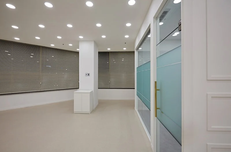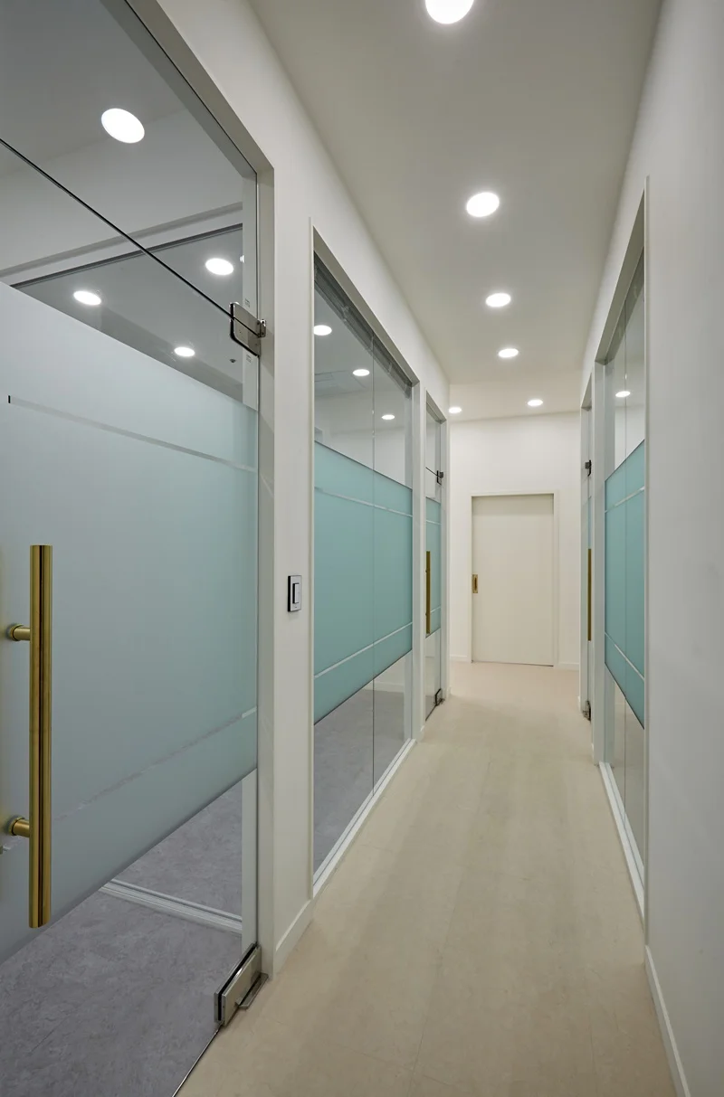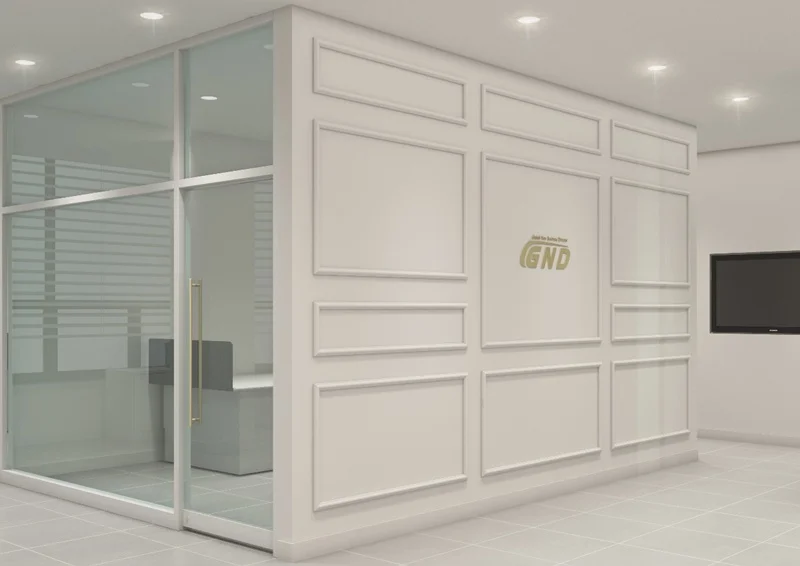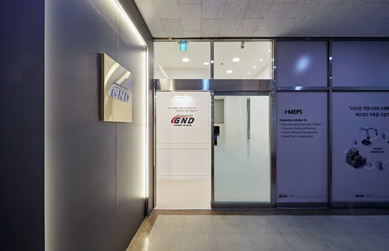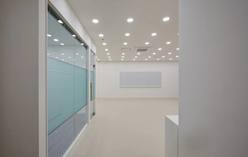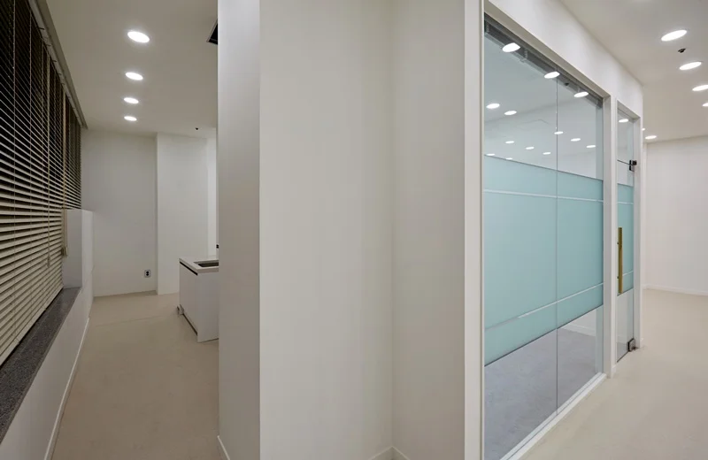 사무실의 첫인상은 입구에서 결정됩니다. 이번 배곧인테리어업체 사무실의 입구는 세련된 디자인의 조명 포인트를 적극적으로 활용하여 모던하고 감각적인 분위기를 연출하였습니다. 스틸 프레임과 투명 유리 도어로 외부에서 내부가 은은하게 보이는 구조를 설계하여, 공간의 개방감을 살리는 동시에 기업의 신뢰감을 전달할 수 있도록 했습니다.