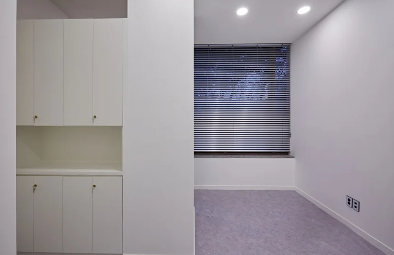 사무공간은 화이트 색상의 심플하고 깨끗한 분위기로 설계하였습니다. 바닥은 화이트오크 계열의 고급 강마루로 마감하고, 벽면은 화이트톤 페인트로 마감하여 공간이 더 넓고 환하게 느껴질 수 있도록 했습니다.