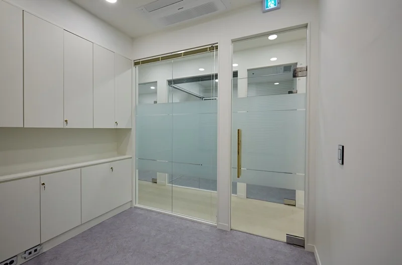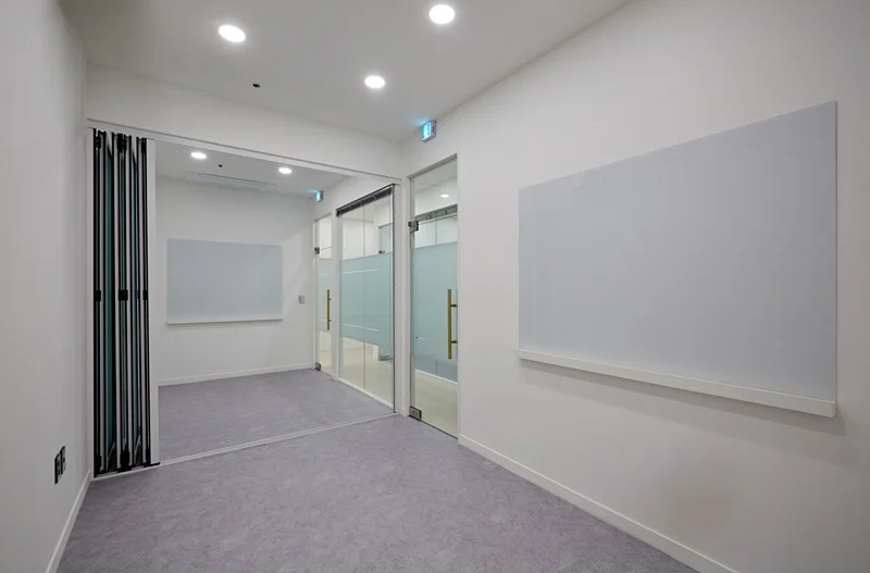회의실은 투명 유리가벽으로 시공해 개방감을 살리고, 필요 시 폴딩도어로 공간을 분리할 수 있어 활용도가 매우 높은 공간입니다.