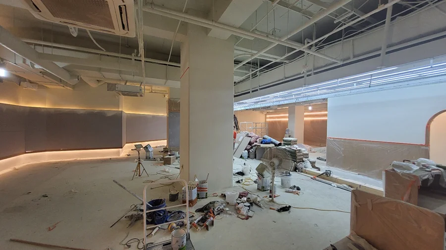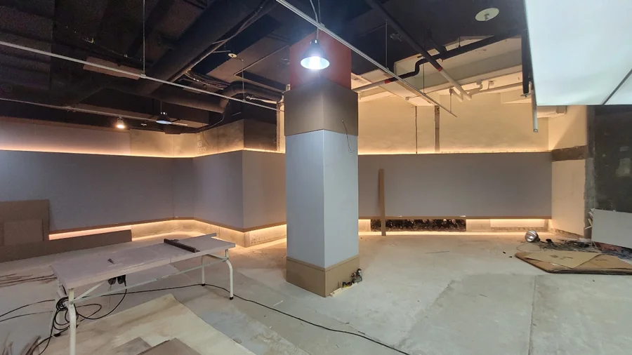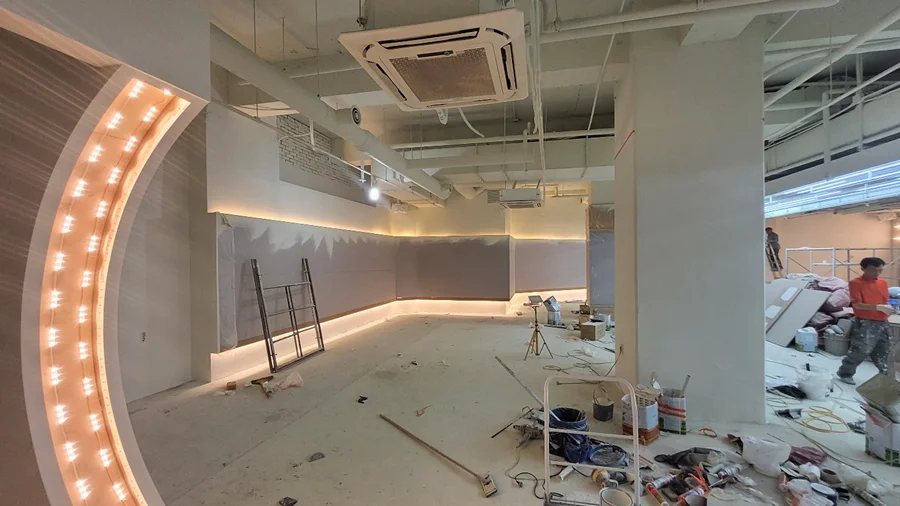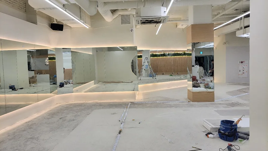 다음 단계는 공간의 기능성을 좌우하는 전기, 설비, HVAC(냉난방 및 환기) 공사입니다. 헬스 트레이닝존에는 각 운동기구에 맞춘 전원 배치를 계획하여, 사용자의 동선을 방해하지 않으면서도 안전하게 연결되도록 설계했습니다.