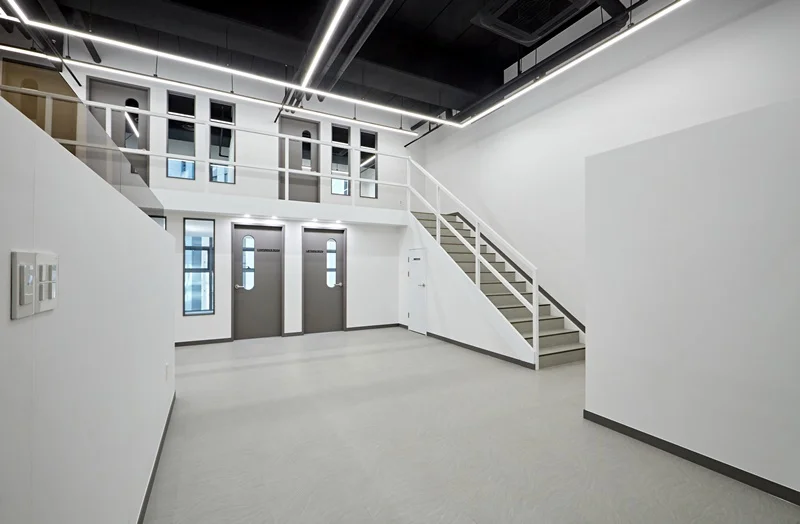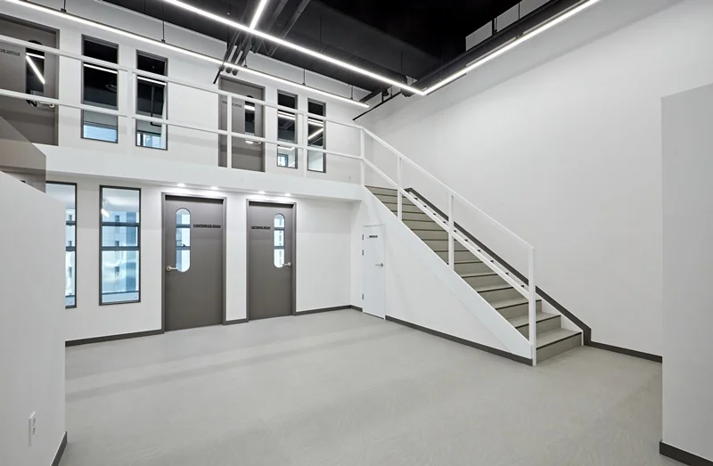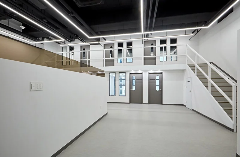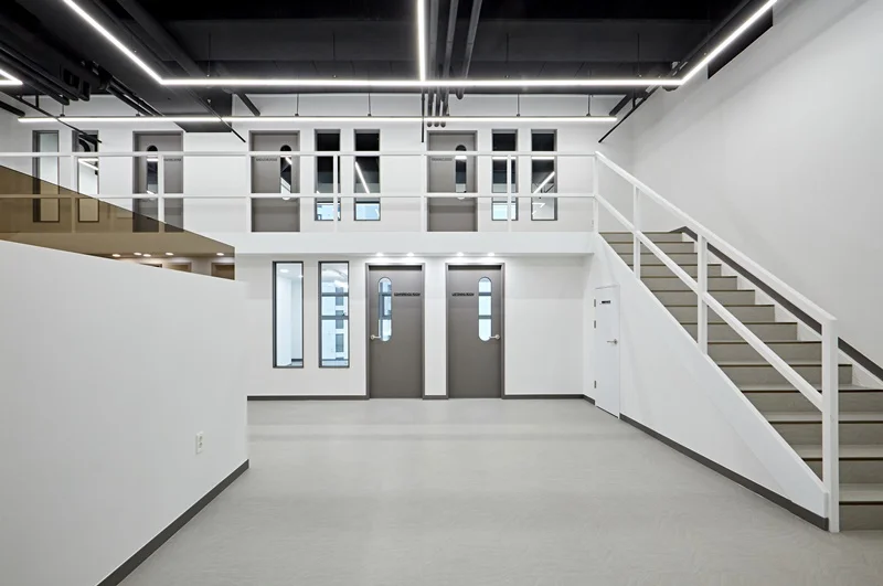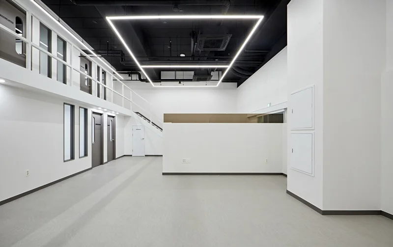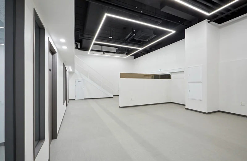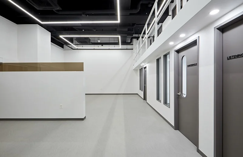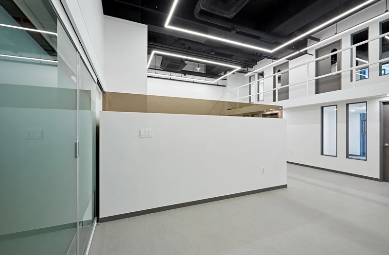 높은 층고를 활용하여 만들어진 준이층 사무실은 실용성과 디자인의 조화를 이루는 공간이에요. 이곳에서 직원들은 자신의 스타일에 맞춰 다양한 작업 공간을 선택할 수 있습니다. 예를 들어, 조용한 개인 업무 공간, 혹은 여러 명이 함께 작업할 수 있는 오픈 공간 등이 마련되어 있어요. 이런 유연한 공간 구성은 직원들이 필요와 상황에 맞춰 최적의 환경에서 작업할 수 있도록 지원해주죠.