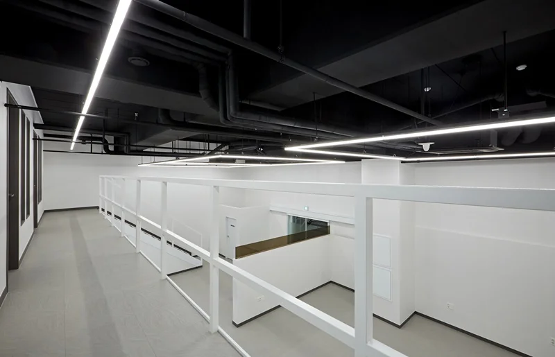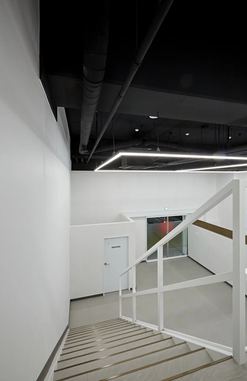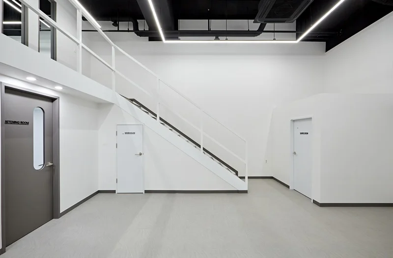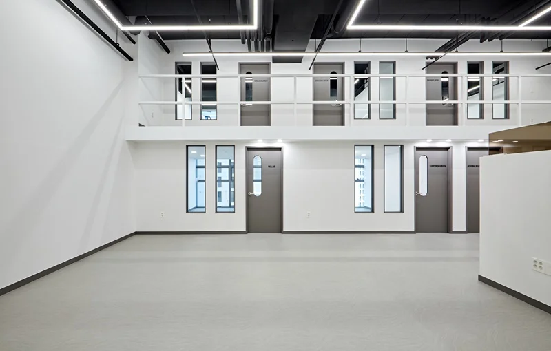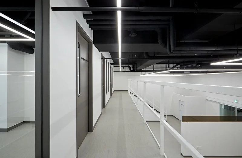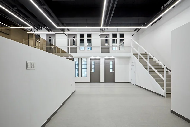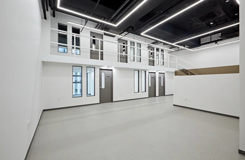 높은 층고를 활용하여 만들어진 준이층 사무실은 실용성과 디자인의 조화를 이루는 공간이에요. 이곳에서 직원들은 자신의 스타일에 맞춰 다양한 작업 공간을 선택할 수 있습니다. 예를 들어, 조용한 개인 업무 공간, 혹은 여러 명이 함께 작업할 수 있는 오픈 공간 등이 마련되어 있어요. 이런 유연한 공간 구성은 직원들이 필요와 상황에 맞춰 최적의 환경에서 작업할 수 있도록 지원해주죠.