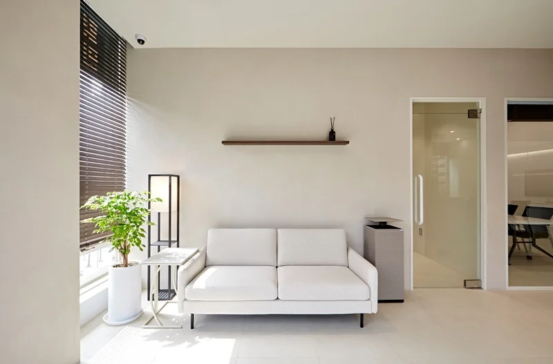 여백의 미를 살리는 디자인 요소들은 공간의 개방감을 더욱 부각시킵니다. 넓은 창문과 자연채광을 최대한 활용한 인테리어는 쾌적한 환경을 제공해주고, 시각적으로도 큰 효과를 줘요. 현대적인 감각은 금속, 유리 등의 재료로 표현되면서 신뢰성과 모던함을 동시에 나타내고 있습니다.