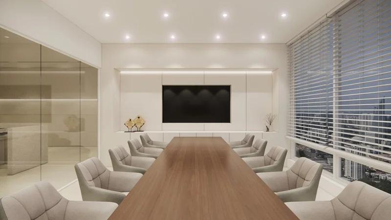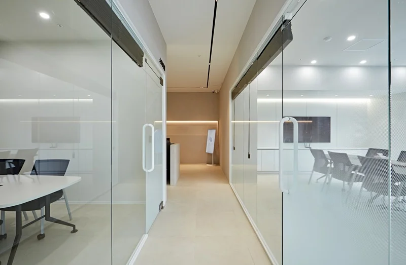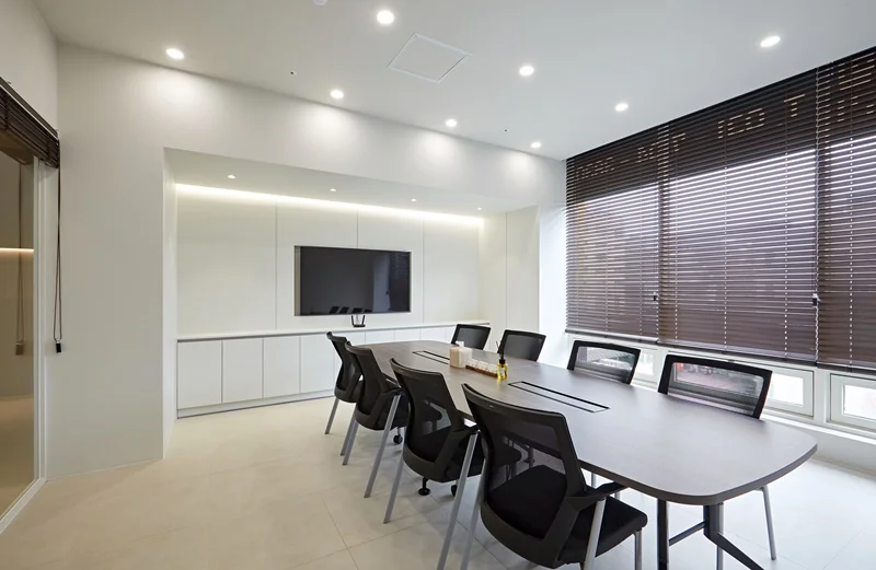 회의실인테리어 화이트&베이지 톤온톤 매치, 수납까지 완벽한 빌트인 오피스디자인