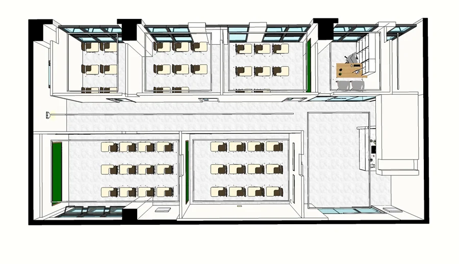 일반적으로 수학학원에서는 소규모 그룹 수업이 이루어지기 때문에, 서로의 의견을 쉽게 나눌 수 있는 환경이 필요합니다. 따라서,책상 배치는 학생들이 자연스럽게 토론하고 소통할 수 있는 분위기를 조성하죠. 이러한 배치는 수업 중에 질문이나 의견을 자유롭게 나눌 수 있도록 도와줍니다.