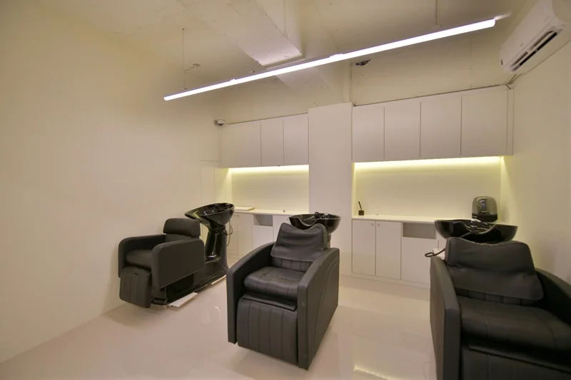 샴푸실은 고객이 편안함을 느끼는 공간으로, 목 부분에 부담이 가지 않는 인체공학적 설계가 중요합니다. 럭셔리 미용실 인테리어에서는 특히 샴푸볼과 의자의 높이 조절이 가능한 제품을 선택하고, 편안한 분위기를 위한 은은한 조명과 아로마 디퓨저 등을 배치하는 것이 좋습니다.