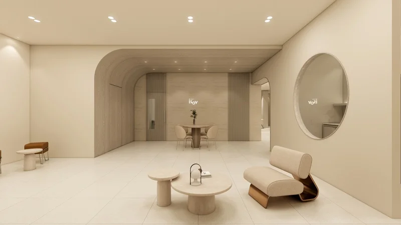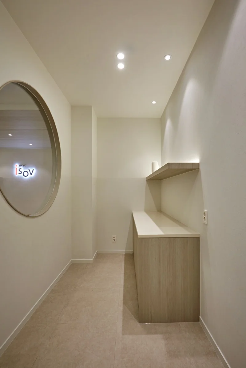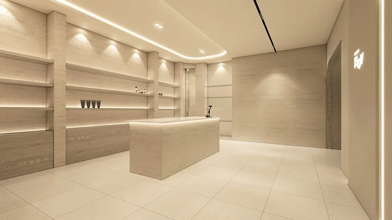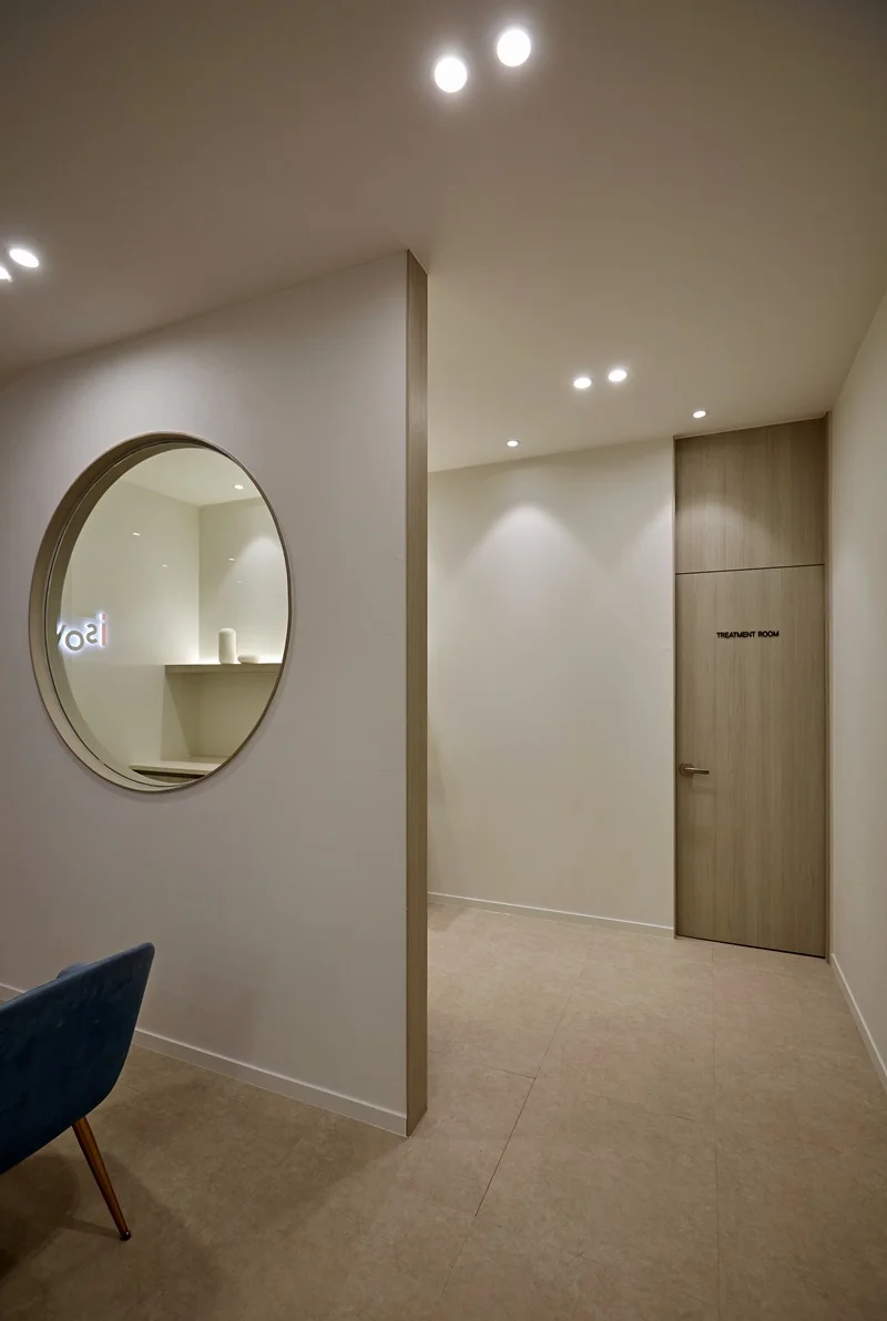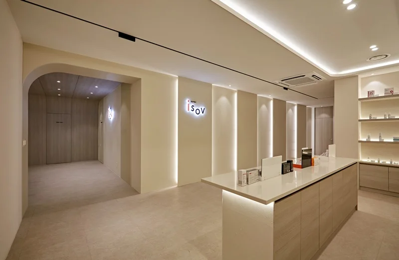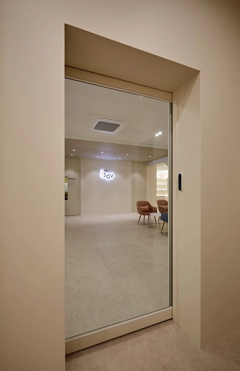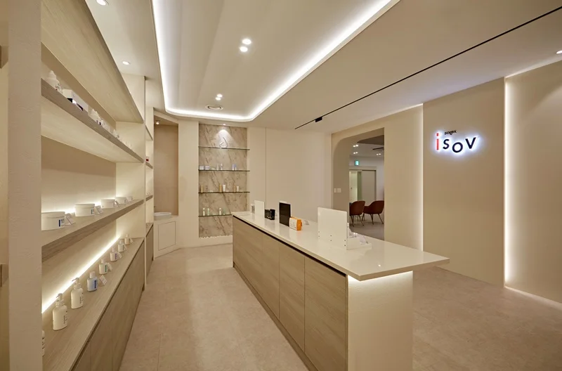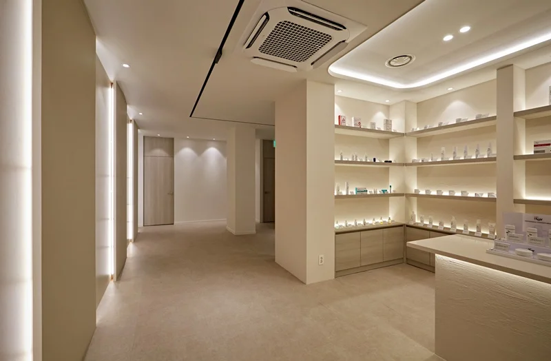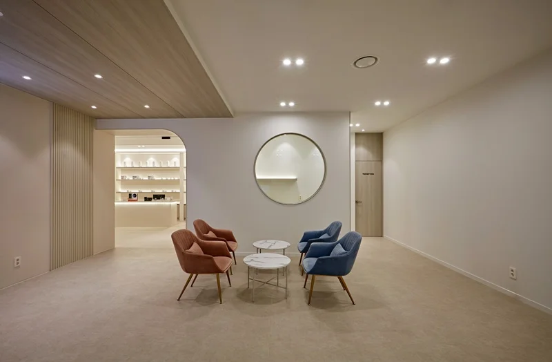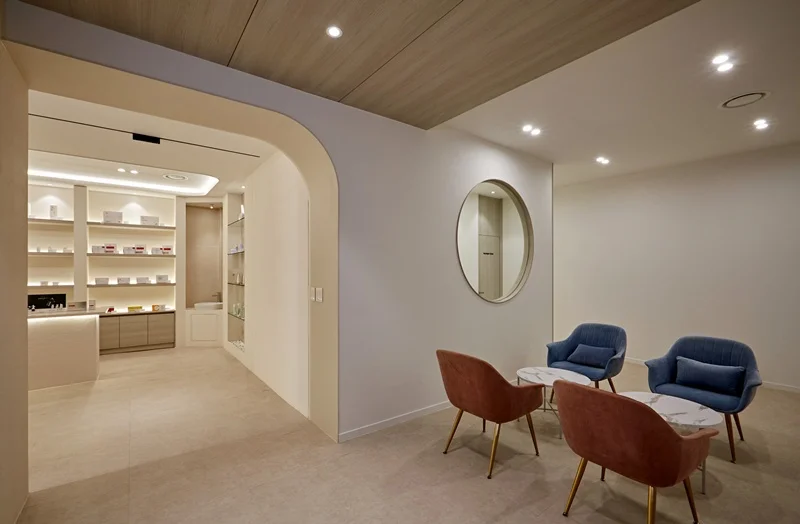 디자인 단계에서는 공간 전체를 화이트와 우드 톤을 중심으로 따뜻하면서도 모던한 분위기를 연출하였고, 포인트 벽면은 소재와 컬러를 달리하여 공간의 입체감을 살렸습니다. 특히 입구에서 들어섰을 때 보이는 시야를 고려해, 리셉션 공간과 주요 포인트 월을 배치하여 브랜드의 아이덴티티와 고급스러움을 동시에 보여줄 수 있도록 계획했습니다.