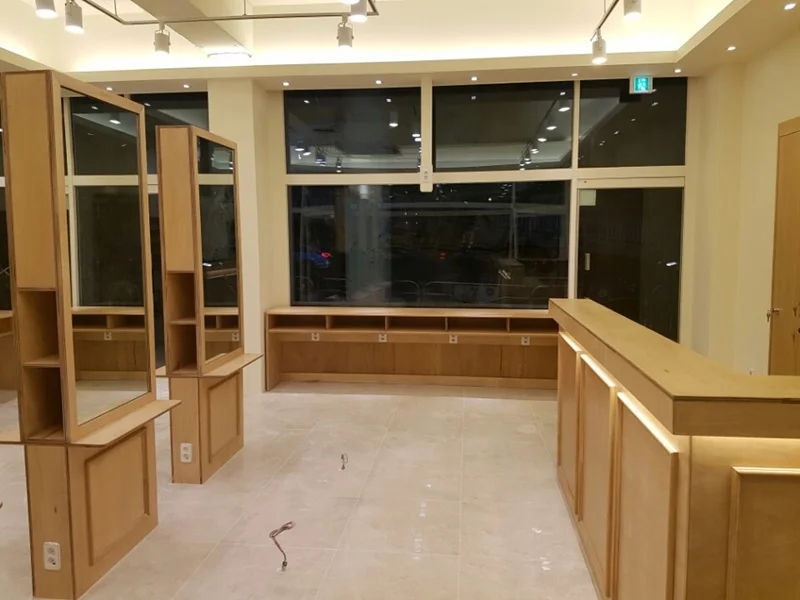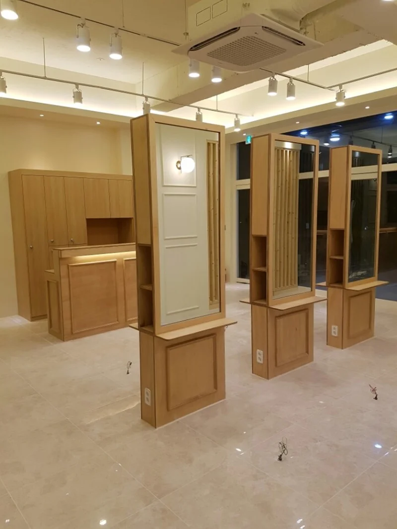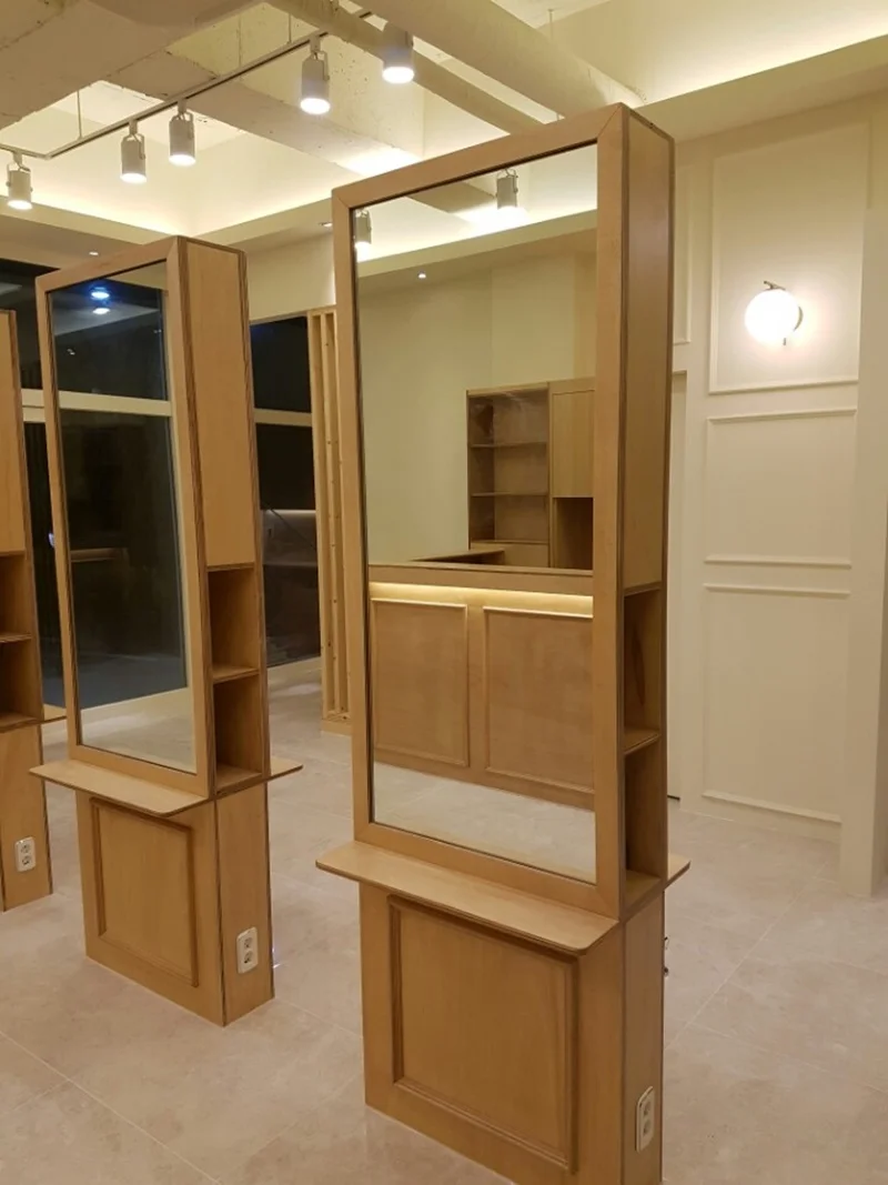 양재미용실인테리어는 조명에 따라 그 분위기가 크게 달라지기도 해요. 우드 느낌의 인테리어와 함께 활용되는 조명은 고객에게 아늑한 느낌을 더욱 강조해주죠. 양재의 이 미용실에서는 따뜻한 톤의 조명을 사용해 어두운 공간에서도 편안함을 느낄 수 있도록 하고 있어요. 빛과 그림자가 조화를 이루며, 세련되면서도 자연 친화적인 느낌을 자아냅니다.