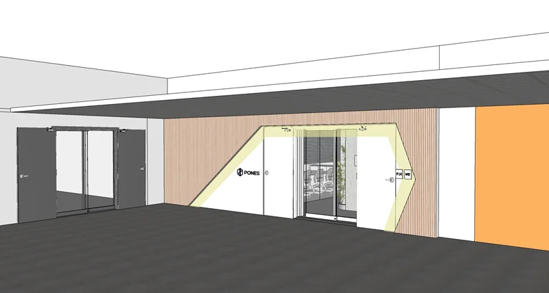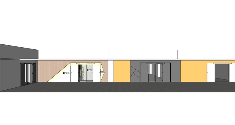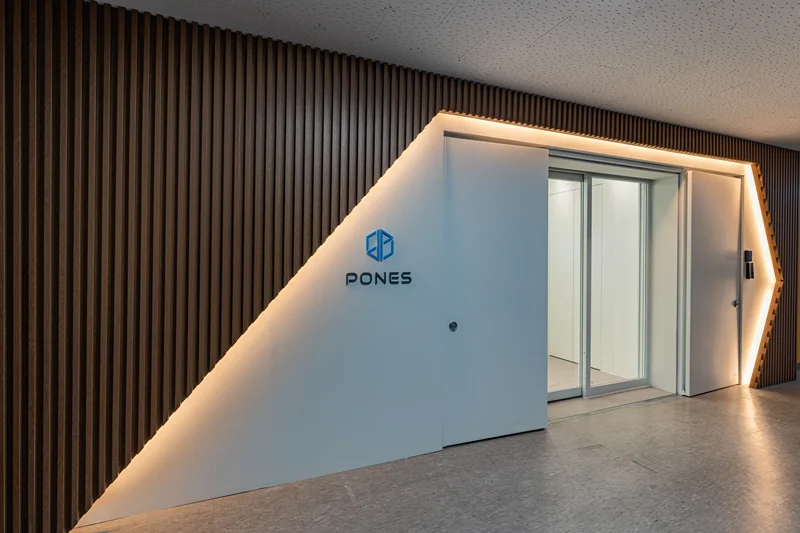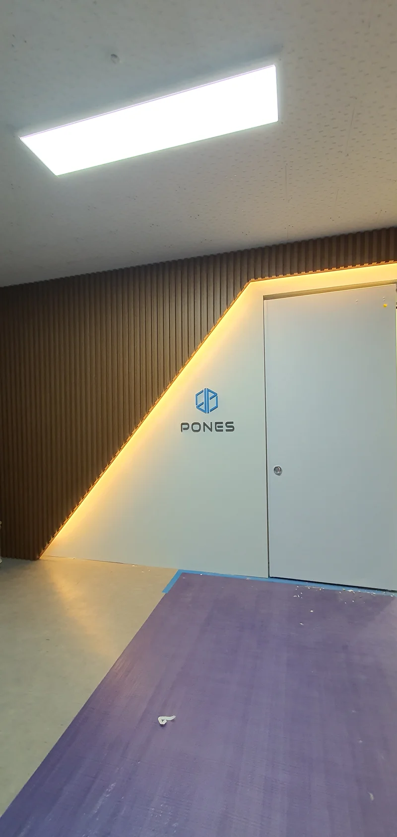 사무실의 첫인상은 입구에서 결정된다고 해도 과언이 아닙니다. 이번 오산인테리어 사무실의 입구 파사드는 우드 컬러의 간살무늬와 은은하게 비춰지는 포인트 조명을 활용해 세련된 분위기를 완성했습니다. 벽면에 입체감을 더하는 세로 간살 디자인은 조명의 방향에 따라 은은한 음영이 생기면서 공간에 깊이를 주었습니다.