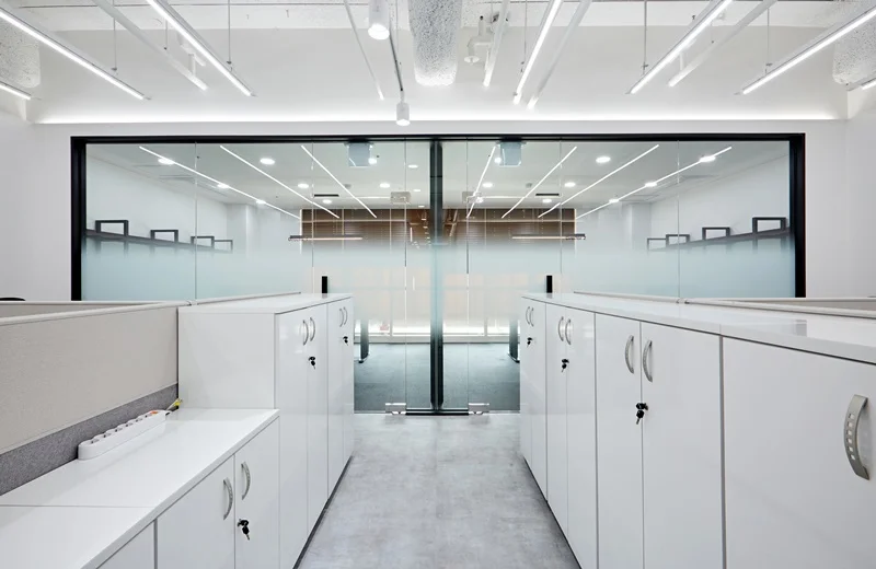 수납장 겸용 파티션은 화이트톤으로 차분하고 안정감 있는 분위기를 유지하며, 필요에 따라 문서, 사무용품을 효율적으로 정리할 수 있어 공간의 활용도를 높였습니다.
