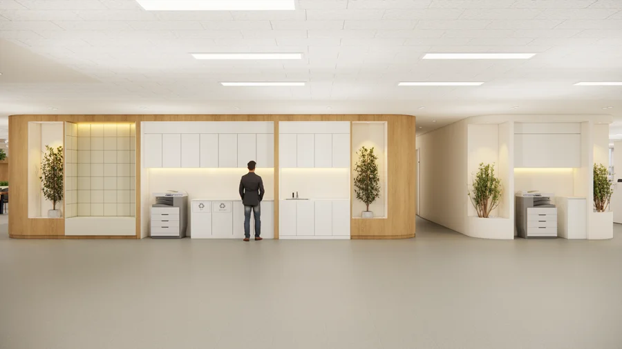 인테리어 공사의 핵심은 시공 전에 3D 디자인을 통해 공간을 미리 시뮬레이션하고, 최적의 동선과 레이아웃, 컬러톤, 소재의 조화를 검토하는 것입니다. 이번 지식산업센터인테리어 프로젝트 역시 3D 모델링을 통해 완성된 공간의 모습을 먼저 확인하고, 고객사의 피드백을 반영해 설계안을 완성했습니다.