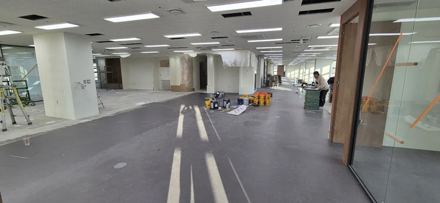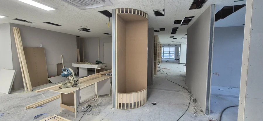 목공공정이 완료되면 벽체, 천장, 파티션 프레임 등에 수성 친환경 페인트를 시공합니다.