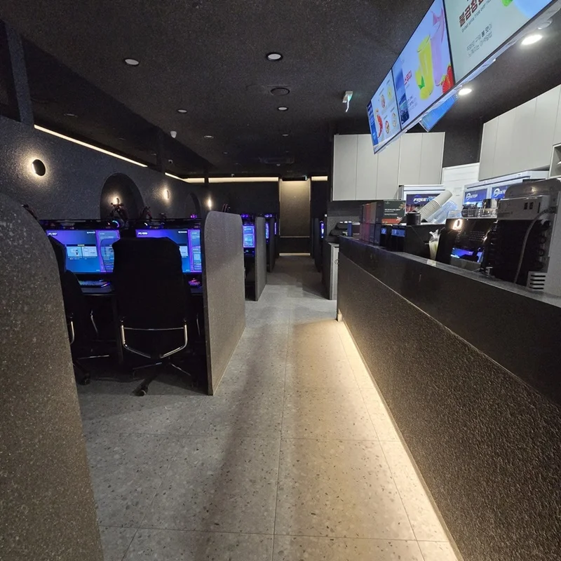 이곳 청라PC방에 처음 발을 들여놓는 순간, 여러분은 ‘여기가 정말 PC방이 맞을까?’라는 생각이 절로 들 겁니다. 기존의 어둡고 다소 획일적인 PC방 이미지와는 확연히 다른, 감각적이고 모던한 디자인이 공간 전체를 감싸고 있기 때문이죠. 전문 디자이너의 손길이 닿은 듯 세련된 인테리어는 마치 트렌디한 카페나 고급 라운지에 온 듯한 착각을 불러일으킵니다