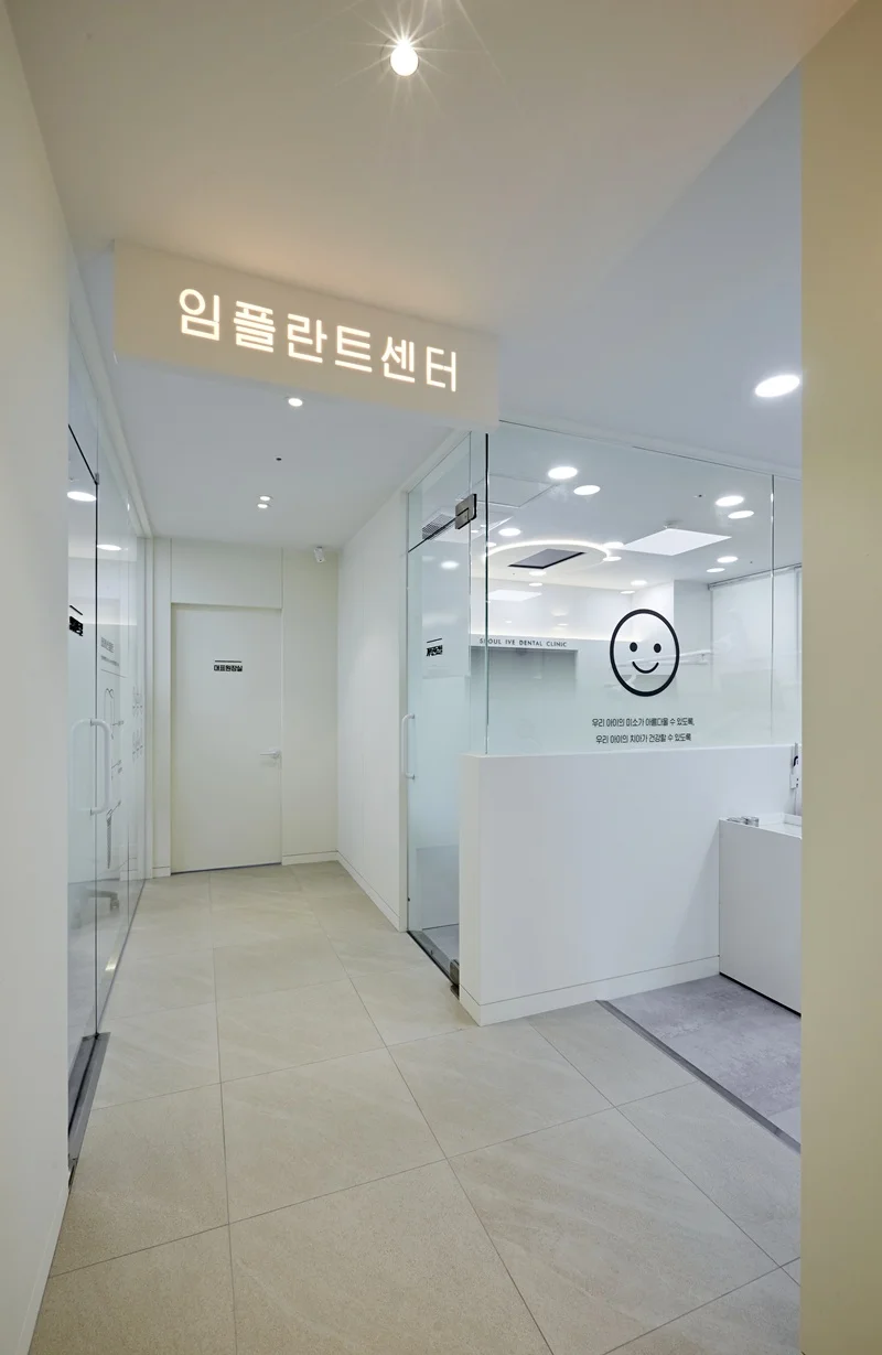 치과의 첫 인상을 결정짓는 입구 파사드는 밝고 고급스러운 디자인으로 연출했습니다. 아이보리 톤의 외벽 마감재에 화이트프레임 유리도어를 적용해 심플하면서도 깨끗한 분위기를 더했고, 포인트 간판을 시공하여 병원명과 로고 사인물이 한눈에 들어오도록 디자인했죠.