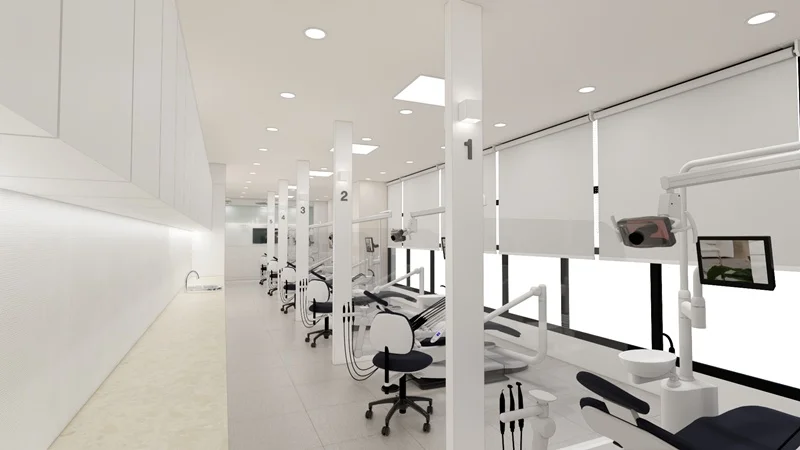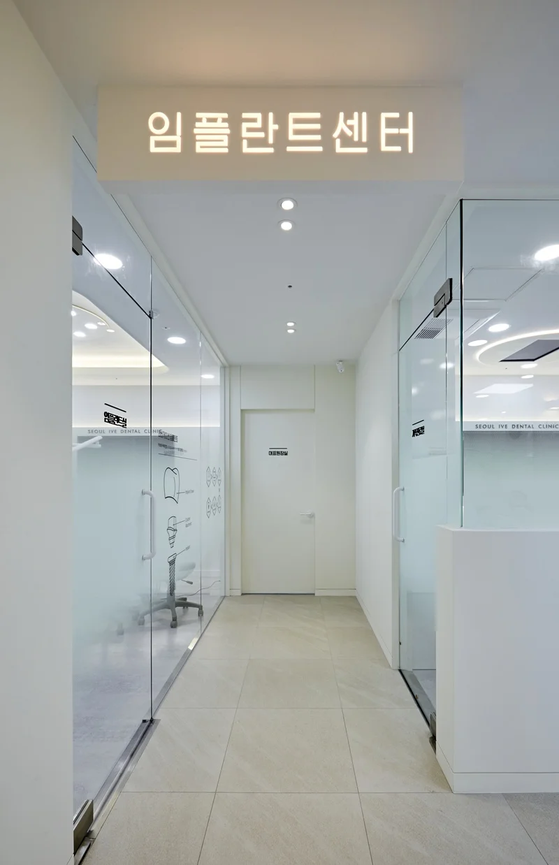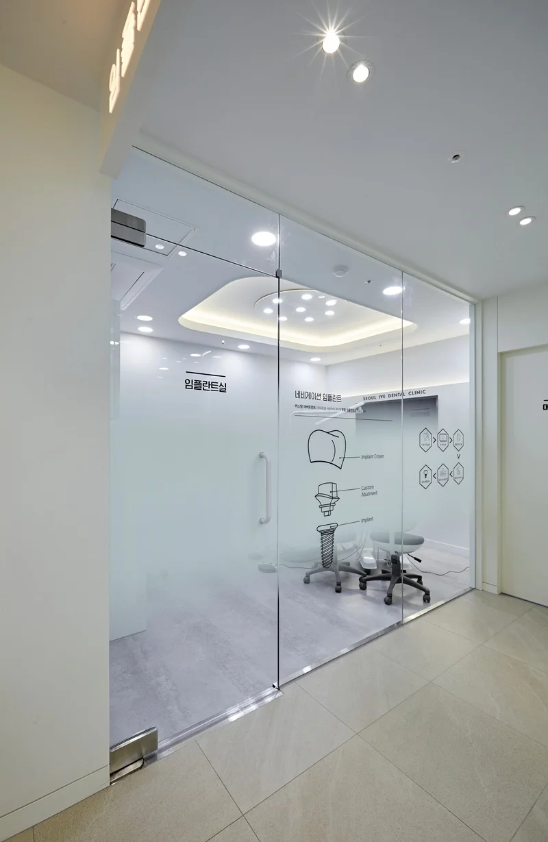 임플란트 전문 공간은 진료의 정밀함과 위생을 고려하여 화이트와 그레이톤의 모던한 인테리어로 연출했습니다. 화이트 색상의 심플한 벽면 마감과 타일 바닥으로 청결한 이미지를 강조했고, 첨단 장비와 체어의 동선을 최적화하여 의료진과 환자의 동선을 효율적으로 설계했습니다.