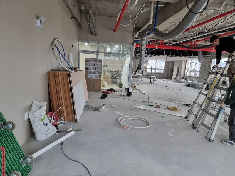 첫 단계는 기존 시설물의 철거 작업입니다. 이전에 사용되던 벽체, 바닥, 천장, 조명, 설비 라인 등을 모두 철거하고 공간을 비웠습니다. 철거 시에는 특히 기존 배관과 전기배선을 체크하여 재활용이 가능한 부분과 신규로 교체해야 할 부분을 구분했습니다. 철거가 끝난 후에는 잔재물 정리와 폐기물 처리를 마친 뒤, 전체 공간을 깔끔하게 청소하여 다음 공정을 준비했습니다.