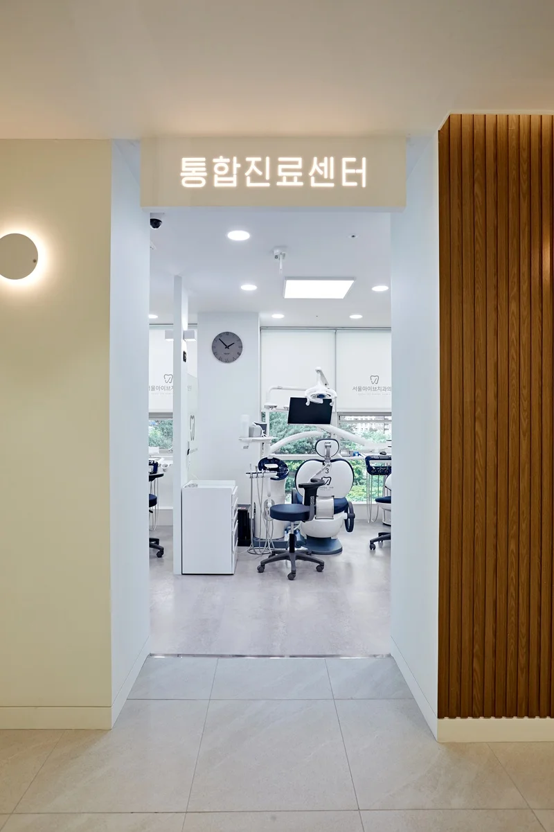 치과의 모든 진료를 통합적으로 운영할 수 있는 통합진료센터 공간화이트 벽면에 은은한 베이지톤을 매치하고, 공간을 유리가벽 파티션으로 세분화해 각 진료공간의 독립성과 개방감을 동시에 살렸습니다.