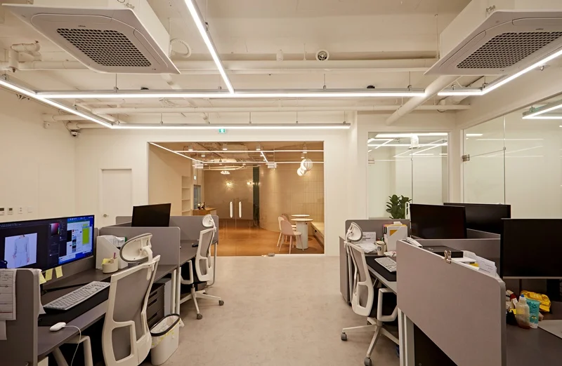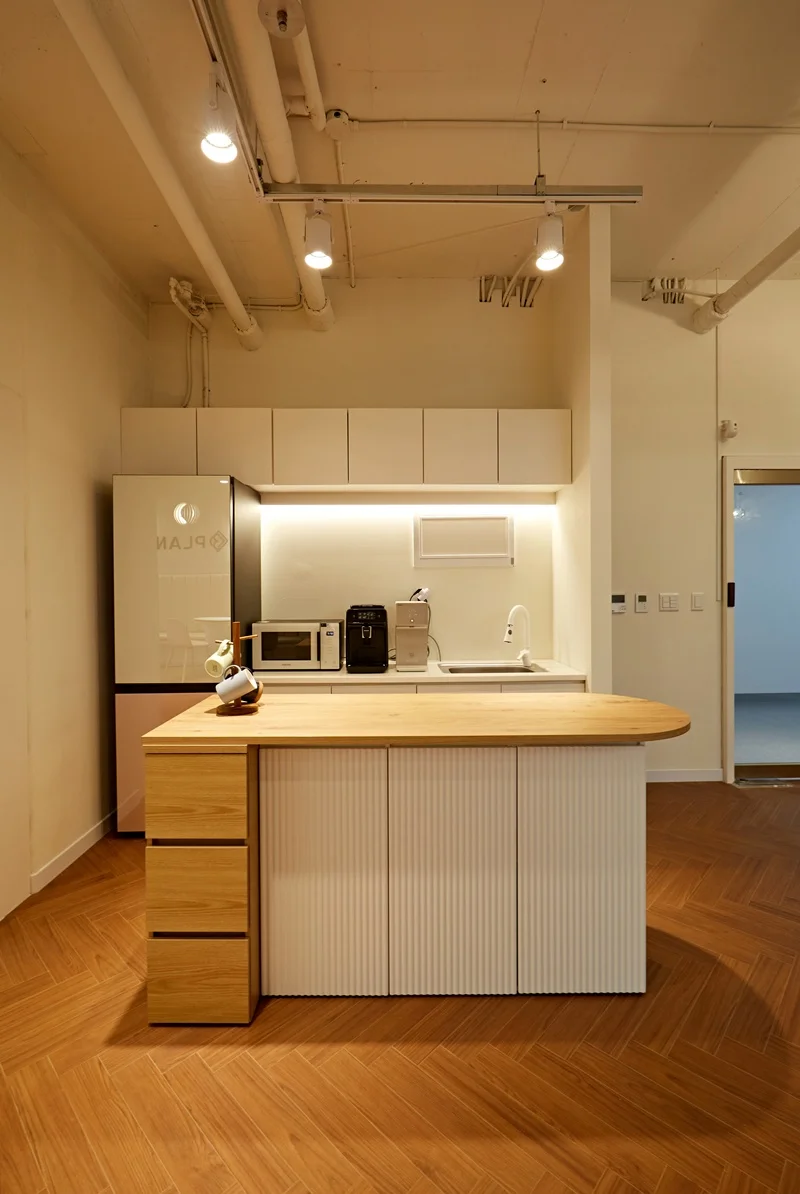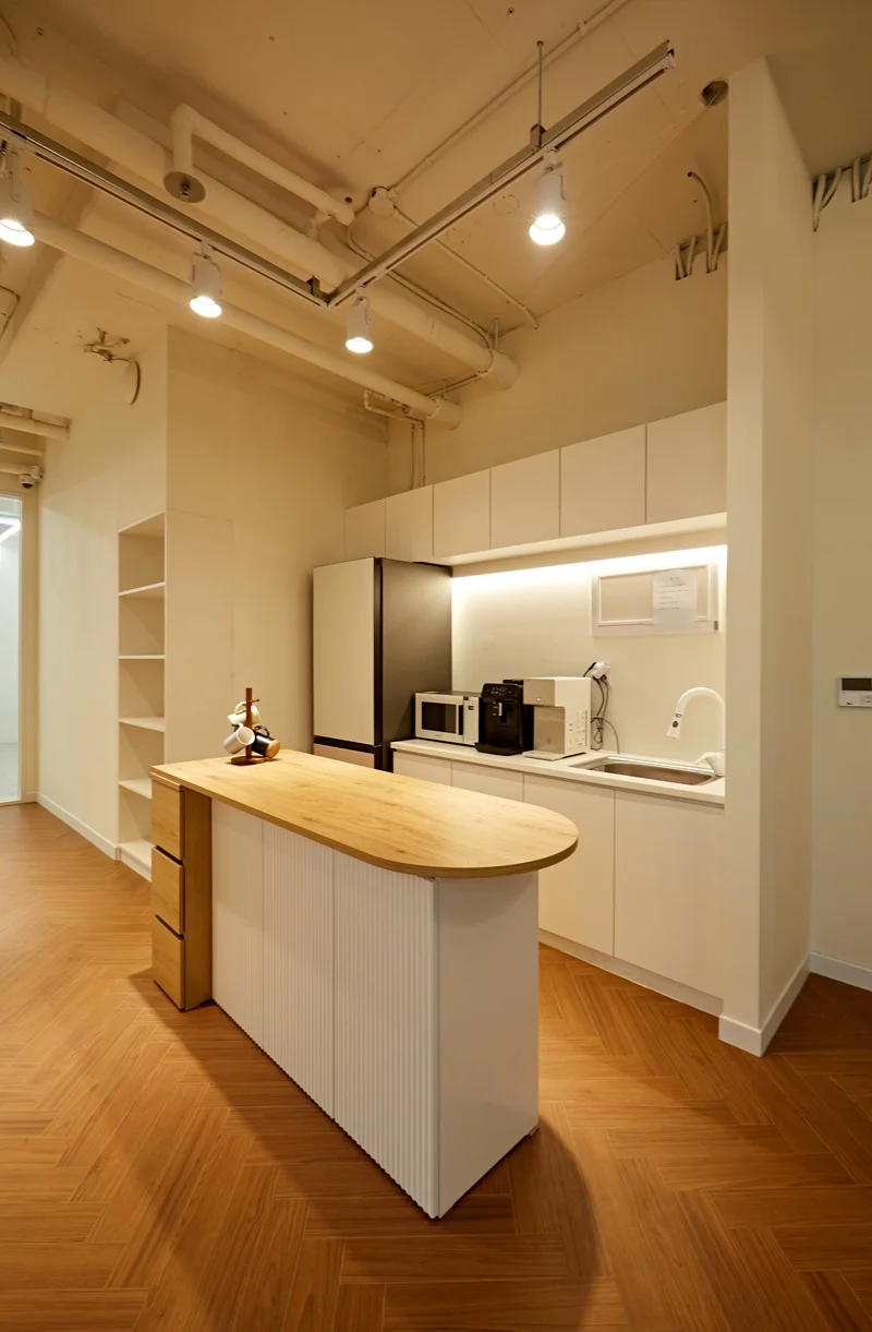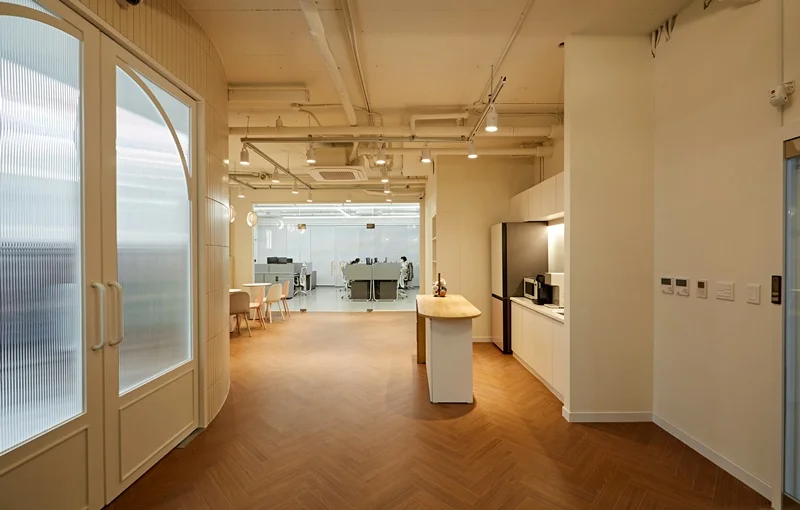 이러한 전반적인 분위기는 업무 공간임에도 불구하고 긴장감을 낮추고, 직원들이 편안하게 머물며 자연스럽게 대화와 협업을 이어갈 수 있도록 돕습니다.
