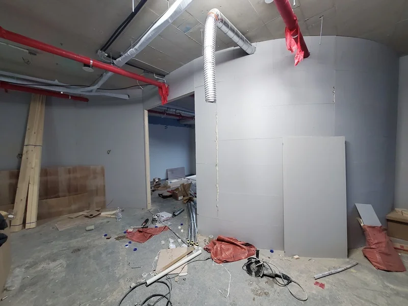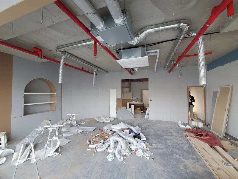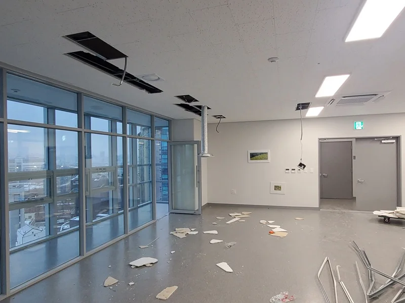 기존에 사용되던 칸막이, 바닥재, 천장 구조물 등을 철거합니다. 이번 프로젝트에서는 오픈형 사무공간과 카페 분위기를 살리기 위해 불필요한 벽체를 과감히 철거하고, 천장 구조를 노출형으로 오픈하여 개방감을 살렸습니다.