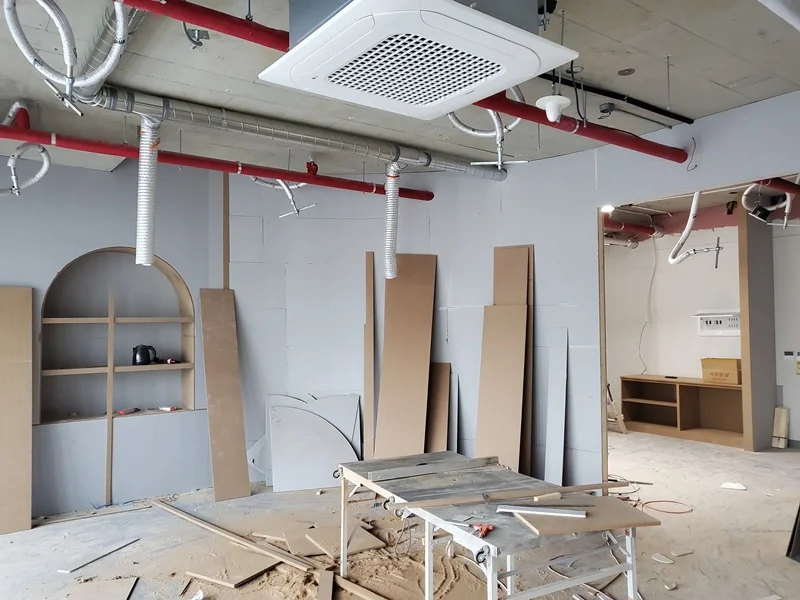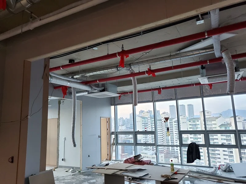 카페 같은 사무실의 분위기를 좌우하는 건 바로 조명입니다. 이 단계에서는 전기 배선을 새로 정리하고, 다운라이트·트랙 조명·펜던트 조명 등 위치를 설계에 맞게 설치합니다. 또한 회의실과 오픈 사무공간의 네트워크 배선, 콘센트, 환기 시스템도 이 과정에서 함께 시공합니다.