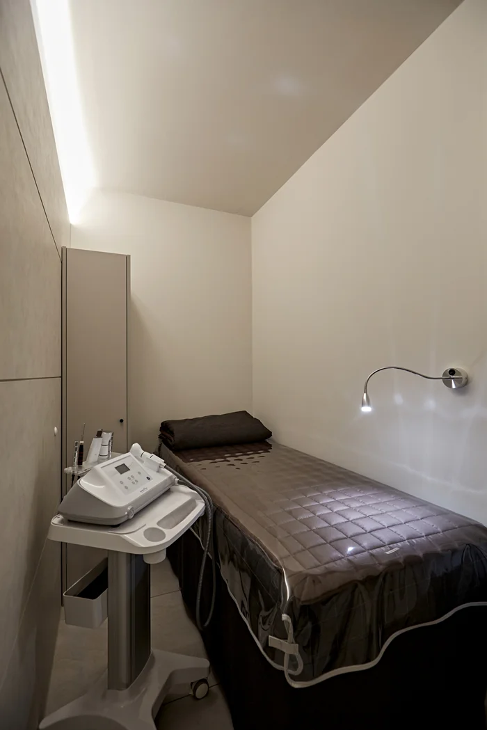 탈의실 공간도 중요한 포인트였습니다. 작은 공간이지만 고급스러운 크림 톤 타일 마감으로 환자들에게 위생적이고 쾌적한 공간을 제공했으며, LED 조명과 거울을 설치해 밝고 넓어 보이는 효과를 주었습니다.