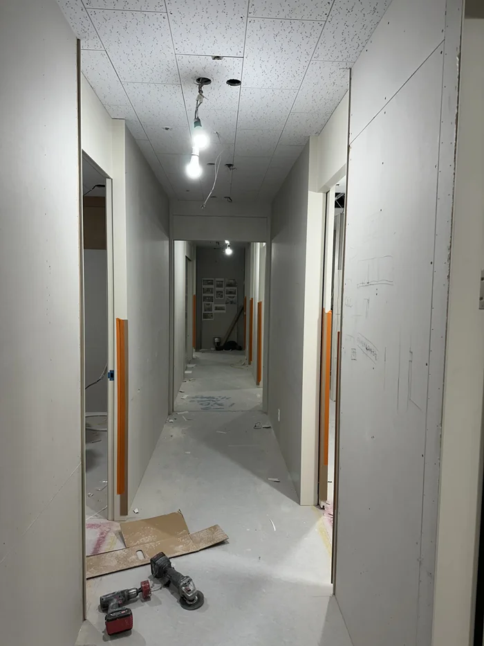 디자인 확정 후, 본격적인 공사에 들어갔습니다. 한방병원인테리어 공사는 위생과 동선, 소음관리, 마감 품질이 중요한 만큼 공정별로 꼼꼼한 계획과 철저한 현장 관리가 필요합니다.