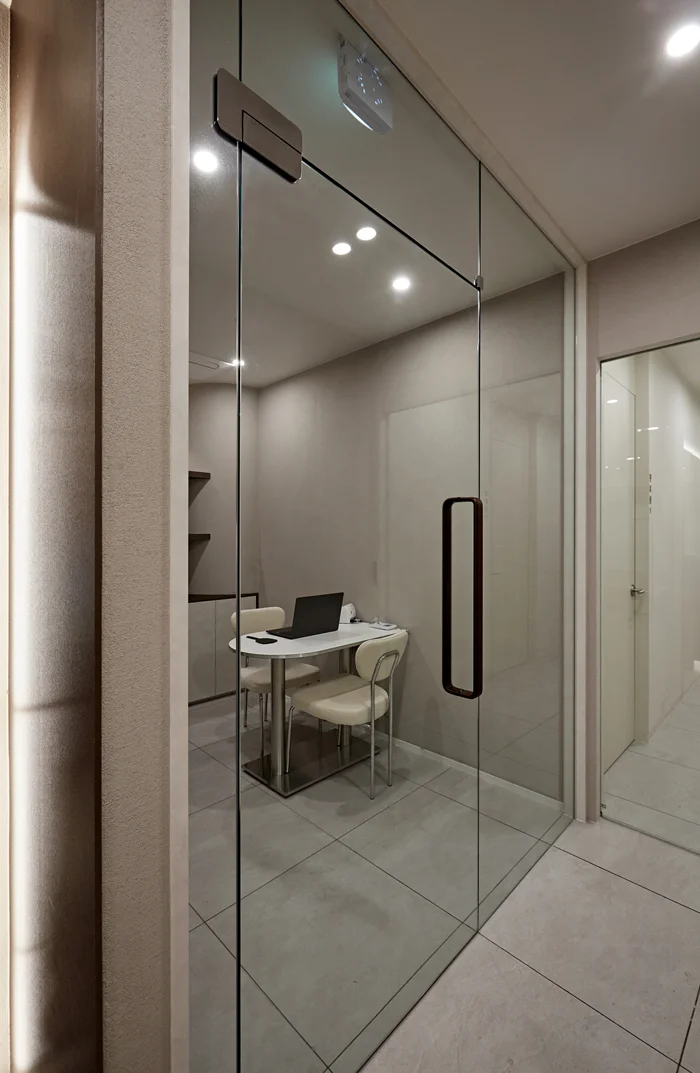 조명 역시 은은한 간접 조명과 벽부등을 함께 활용해 고객이 긴장을 덜 느끼도록 세심하게 배려했으며, 환자와 의료진의 동선을 분리하여 진료 시 불편함이 없도록 설계했습니다.