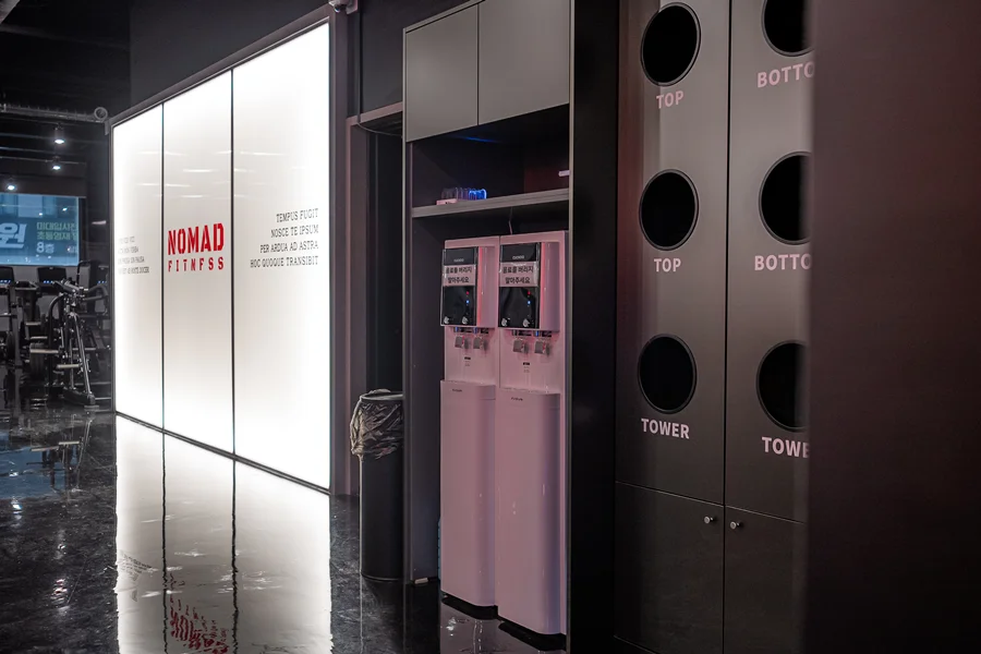 헬스장 입구는 첫인상을 결정짓는 중요한 요소입니다.