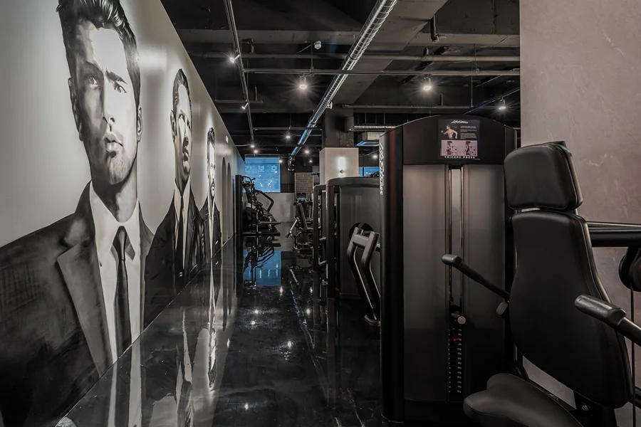 헬스장 내부는 그 자체로 예술적인 공간으로 변모했습니다.