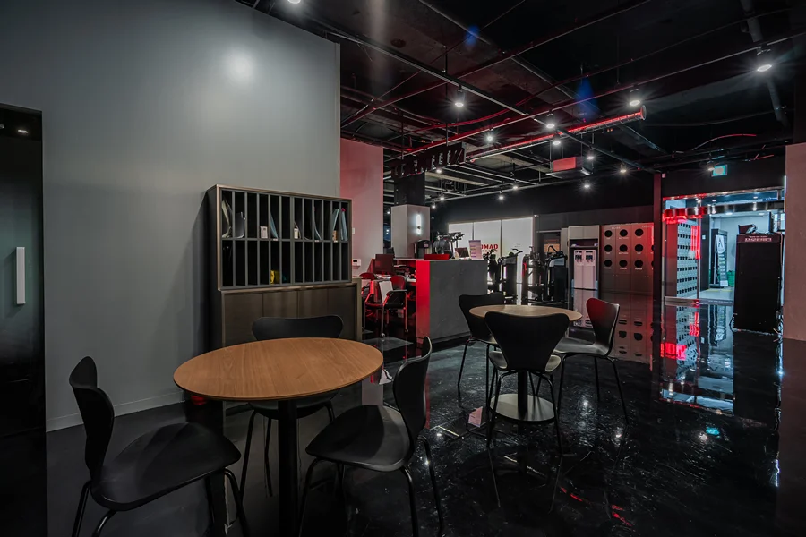 레드와 라인 조명을 배치하여 강렬한 에너지와 시각적 자극을 극대화했죠. 이러한 세심한 디테일은 헬스장이 단순한 운동 공간이 아니라, 고객들이 즐겁게 운동할 수 있는 특별한 공간으로 만들어 주었습니다.