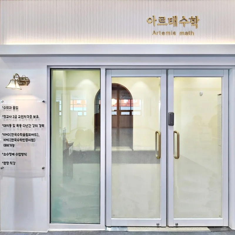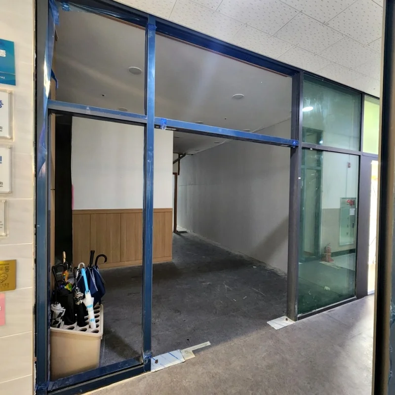입구는 슬라이딩 자동문을 설치하여 학생들의 이동이 편리하고, 공간 효율성까지 고려했습니다. 투명 유리에는 은은한 패턴 시트지를 부착해 내부의 사생활 보호 효과와 더불어 외부에서도 세련된 분위기를 유지할 수 있도록 구성했습니다. 상단 면에는 세로 패턴의 루버 디자인을 더해, 단조로움을 피하고 입체감을 살렸으며, 포인트 조명 라인을 은은하게 배치하여 야간에도 간판과 입구가 고급스럽게 연출되도록 완성했습니다.